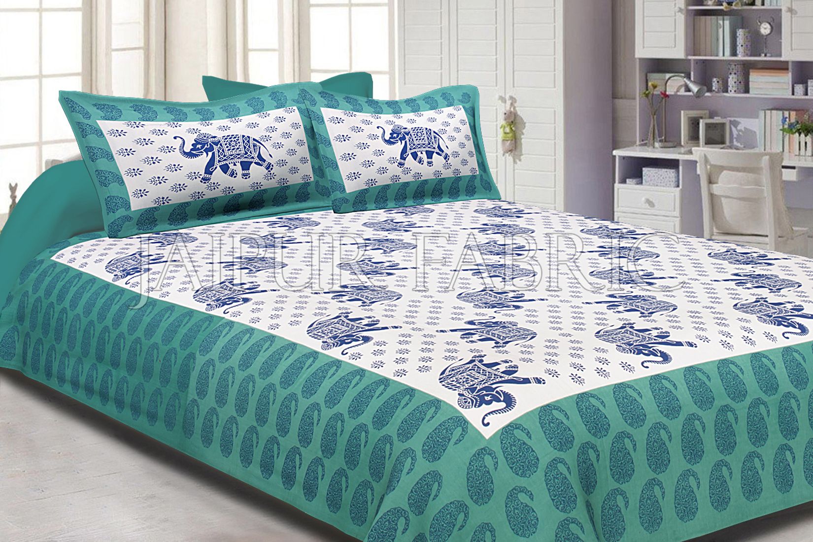 Bring a touch of nature and serenity to your bedroom with the Sea Green Border Tree Print Sea Green Base Cotton Double Bed Sheet. Designed to add a calming atmosphere, this bedsheet combines a soothing sea green color with a tree print to offer both comfort and style.
