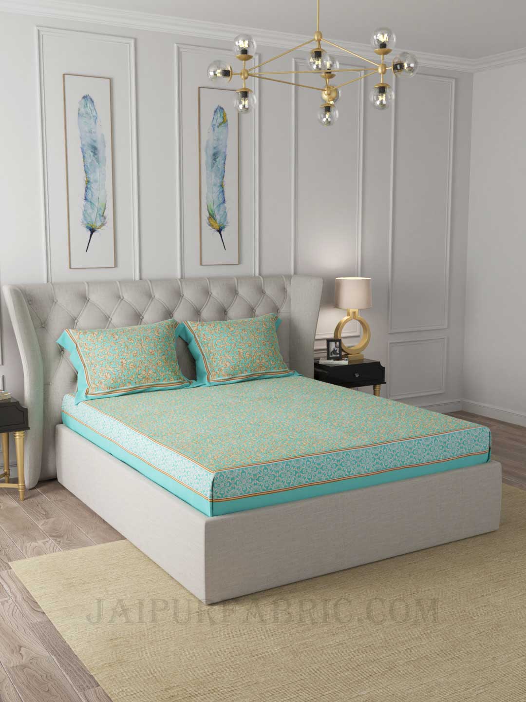 🌿 Montrose Leaves Cadet Green Double Bedsheet – Elegant Comfort for Your Bedroom 🌿