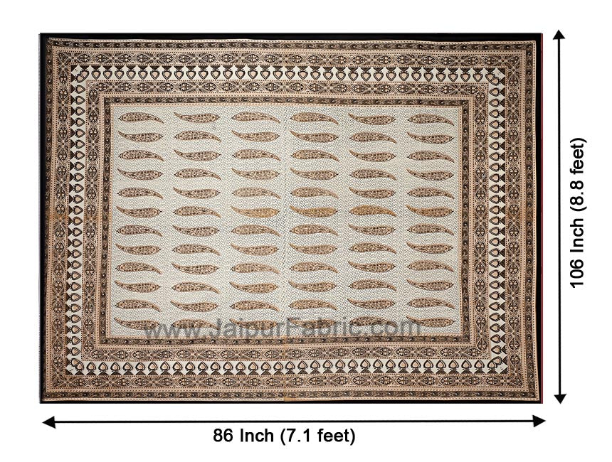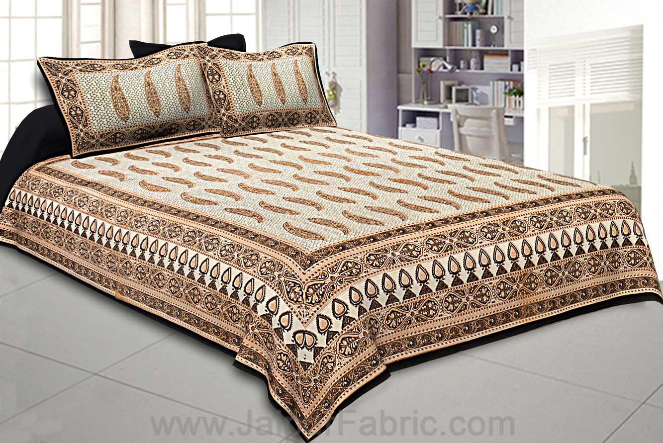 Brown Border White Base Circle Pattern Screen Print Cotton Double Bed Sheet Brown Border White Base Circle Pattern Screen Print Cotton Double Bed Sheet