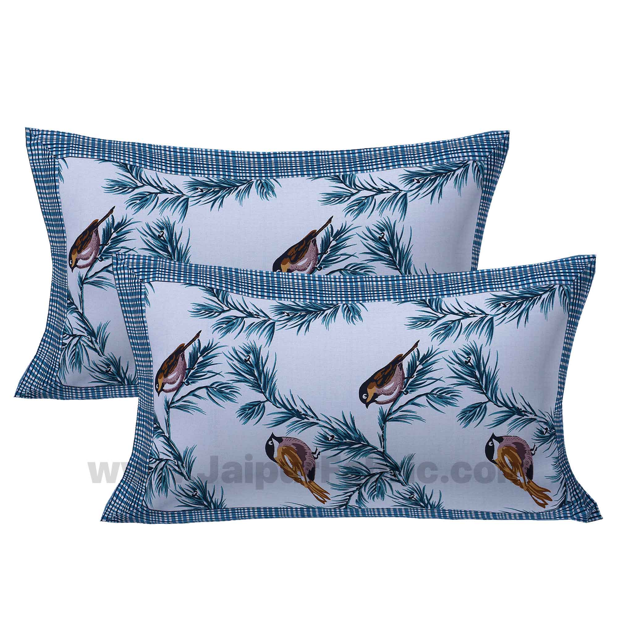 Pure Cotton 240 TC Double bedsheet indian bird print blue