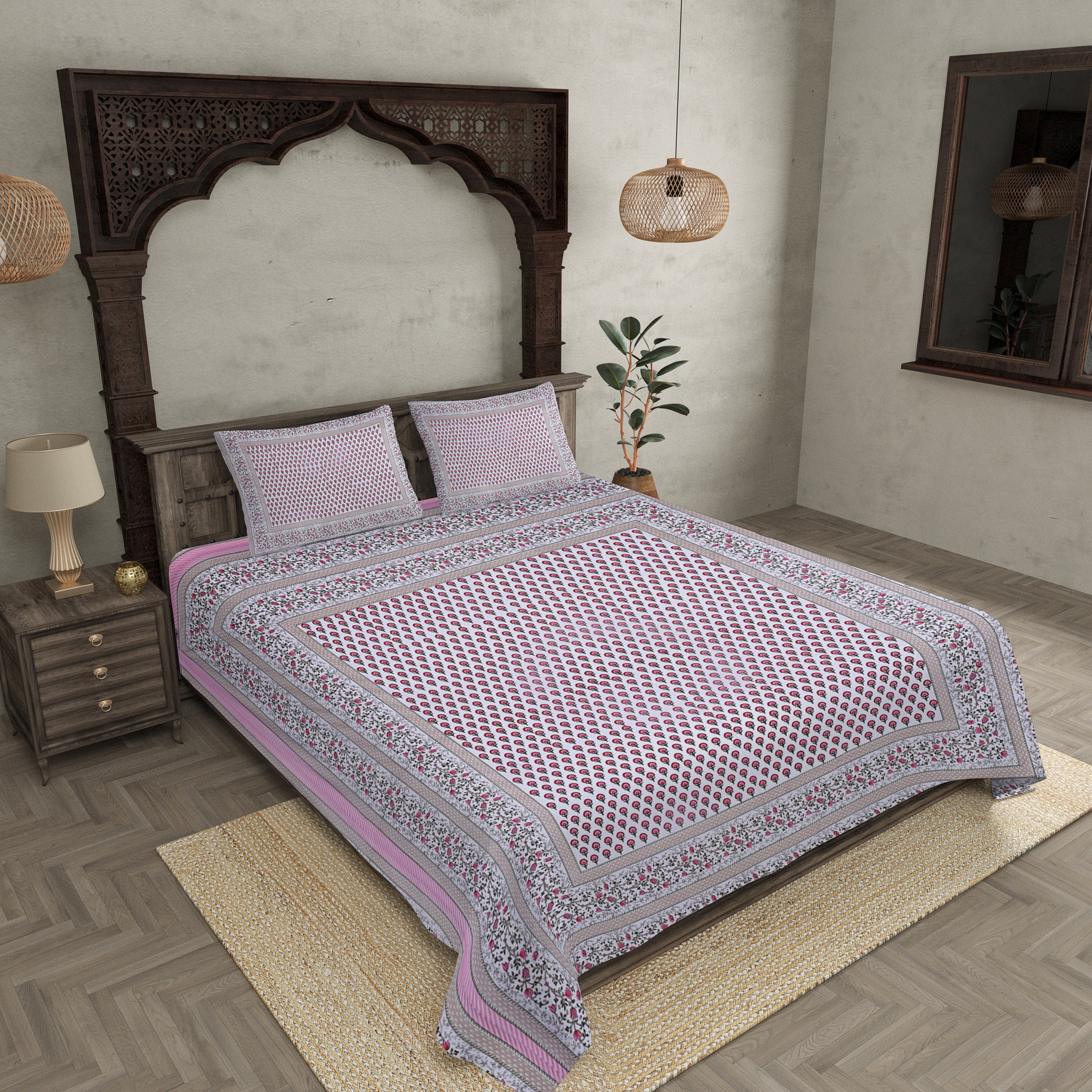 Pink Kalangi Printed Cotton Double Bed Sheet