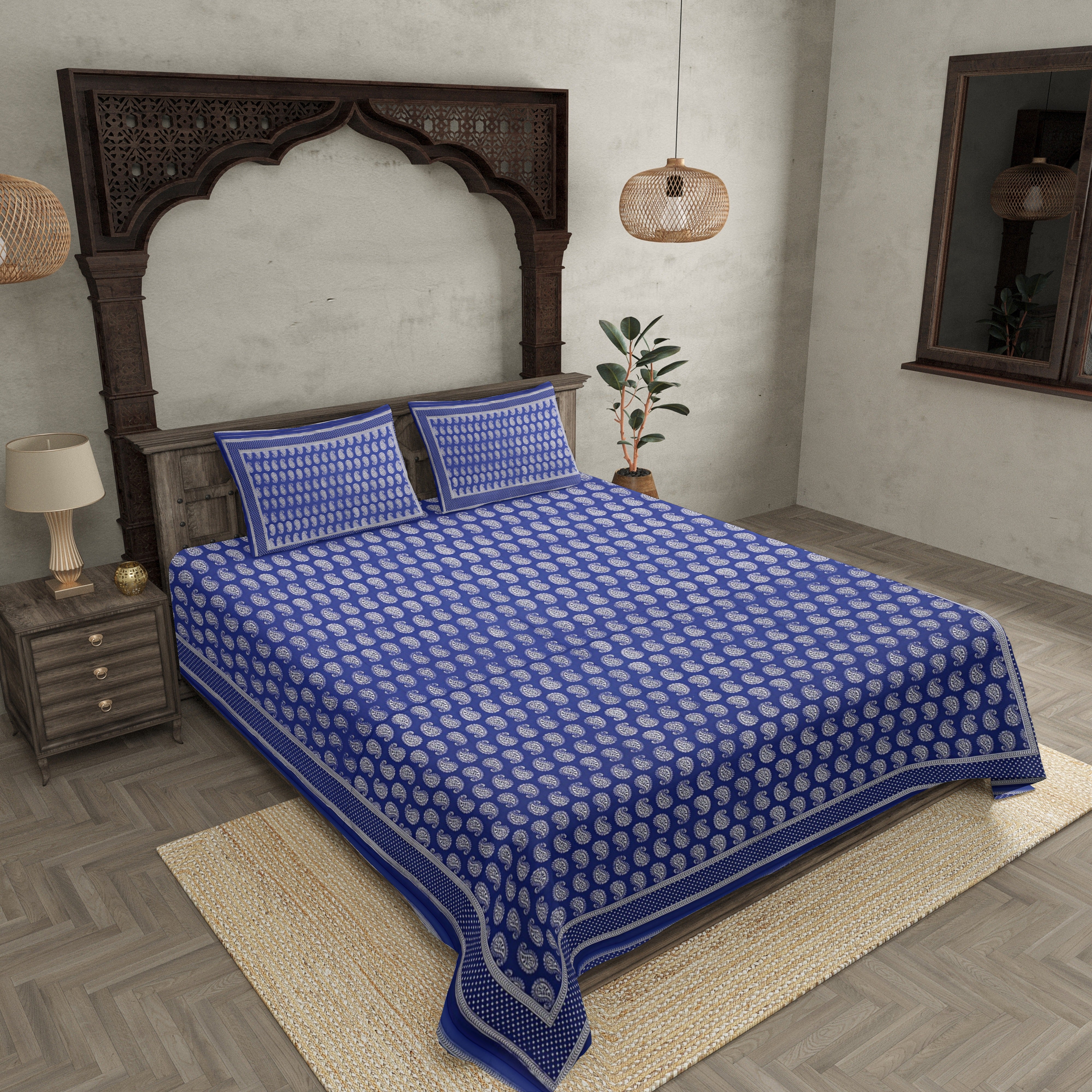 Paisley Double Bedsheet Blue Color Fine Cotton With Two Pillow covers Paisley Double Bedsheet Blue Color Fine Cotton With Two Pillow covers