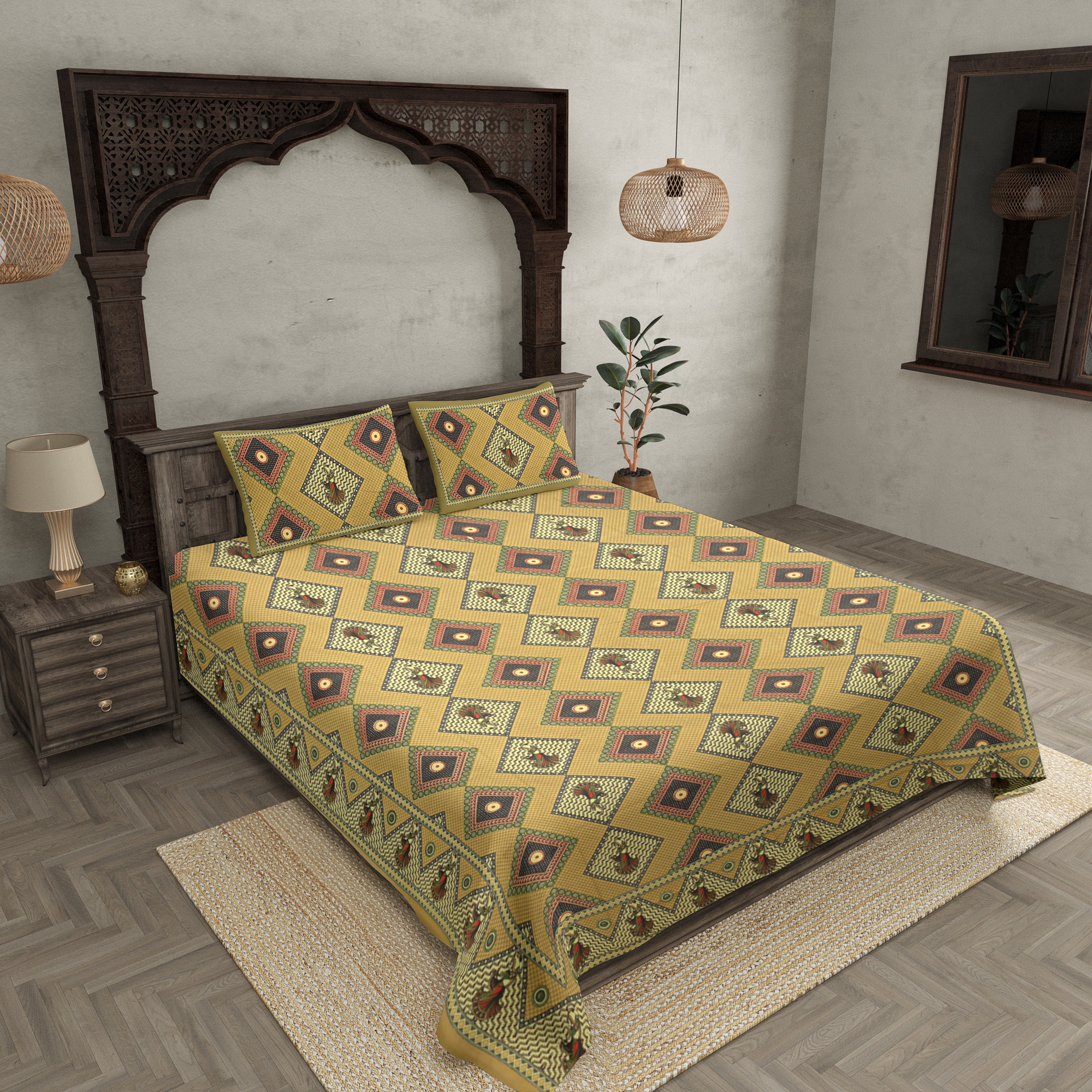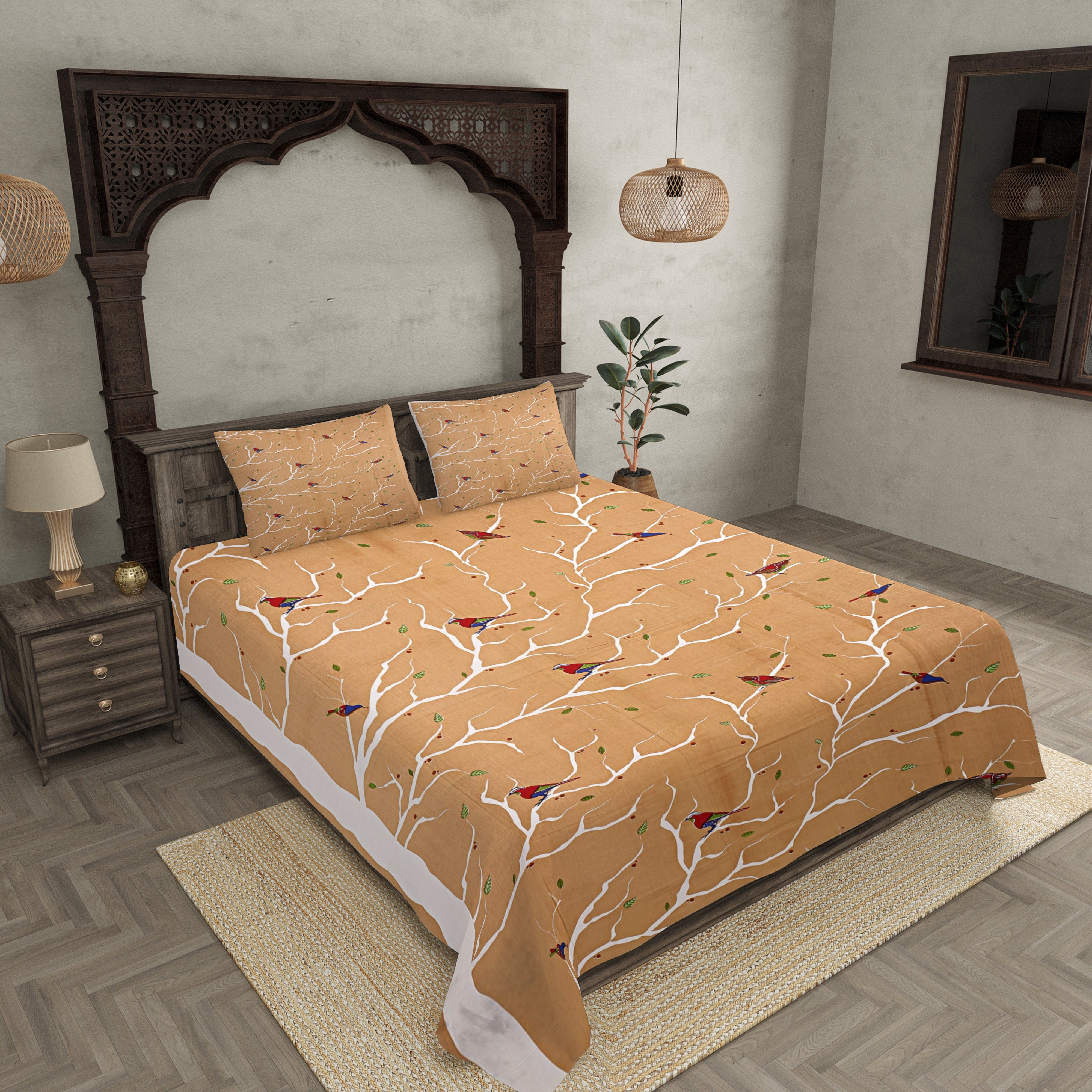 Double bedsheet Brown Color Gujri Dance  Pattern Smooth Touch With 2 Pillow Cover Double bedsheet Brown Color Gujri Dance  Pattern Smooth Touch With 2 Pillow Cover