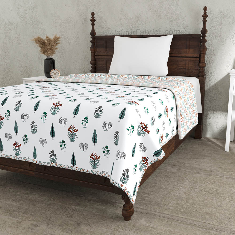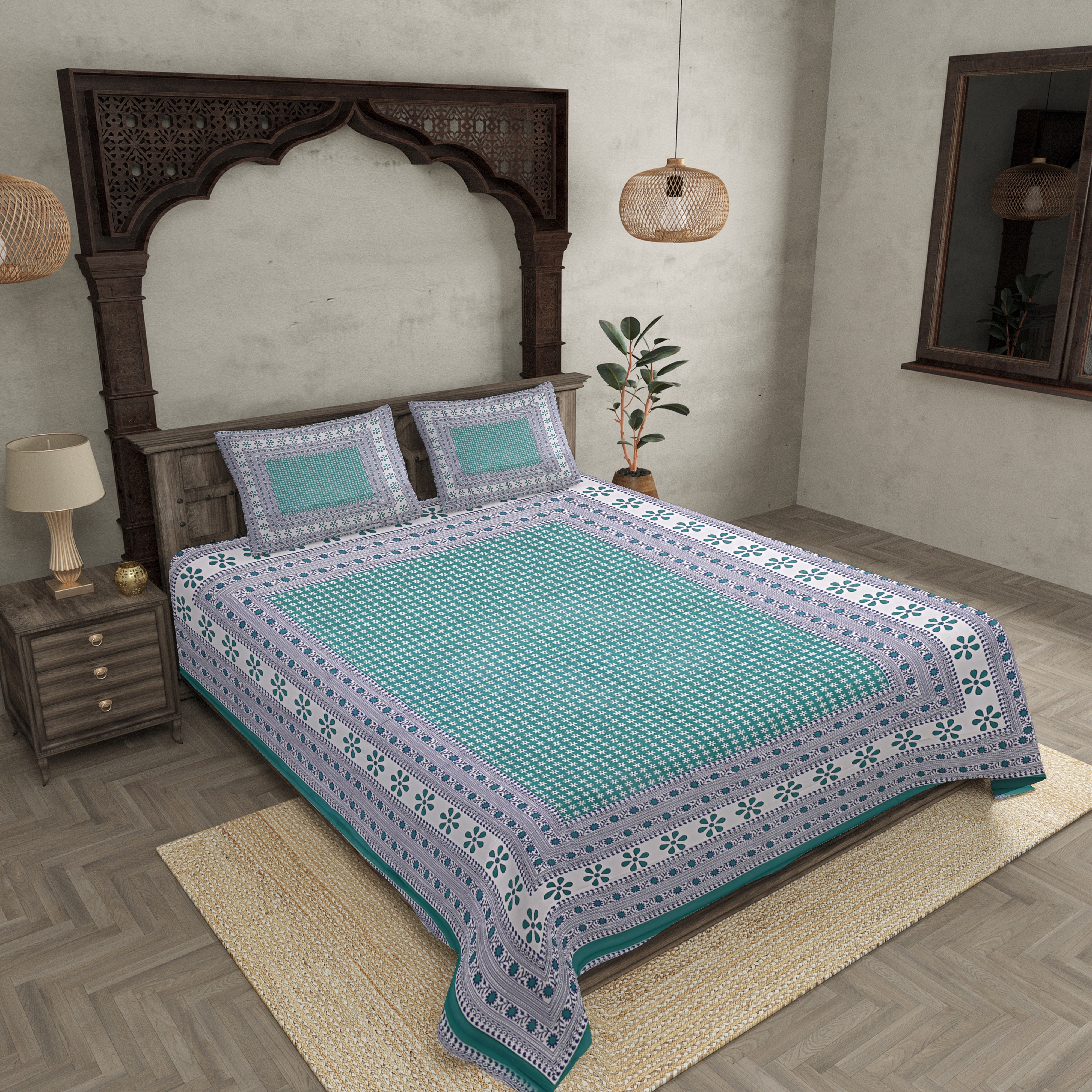 Turquoise Garden Jaipur Fabric Double Bed Sheet