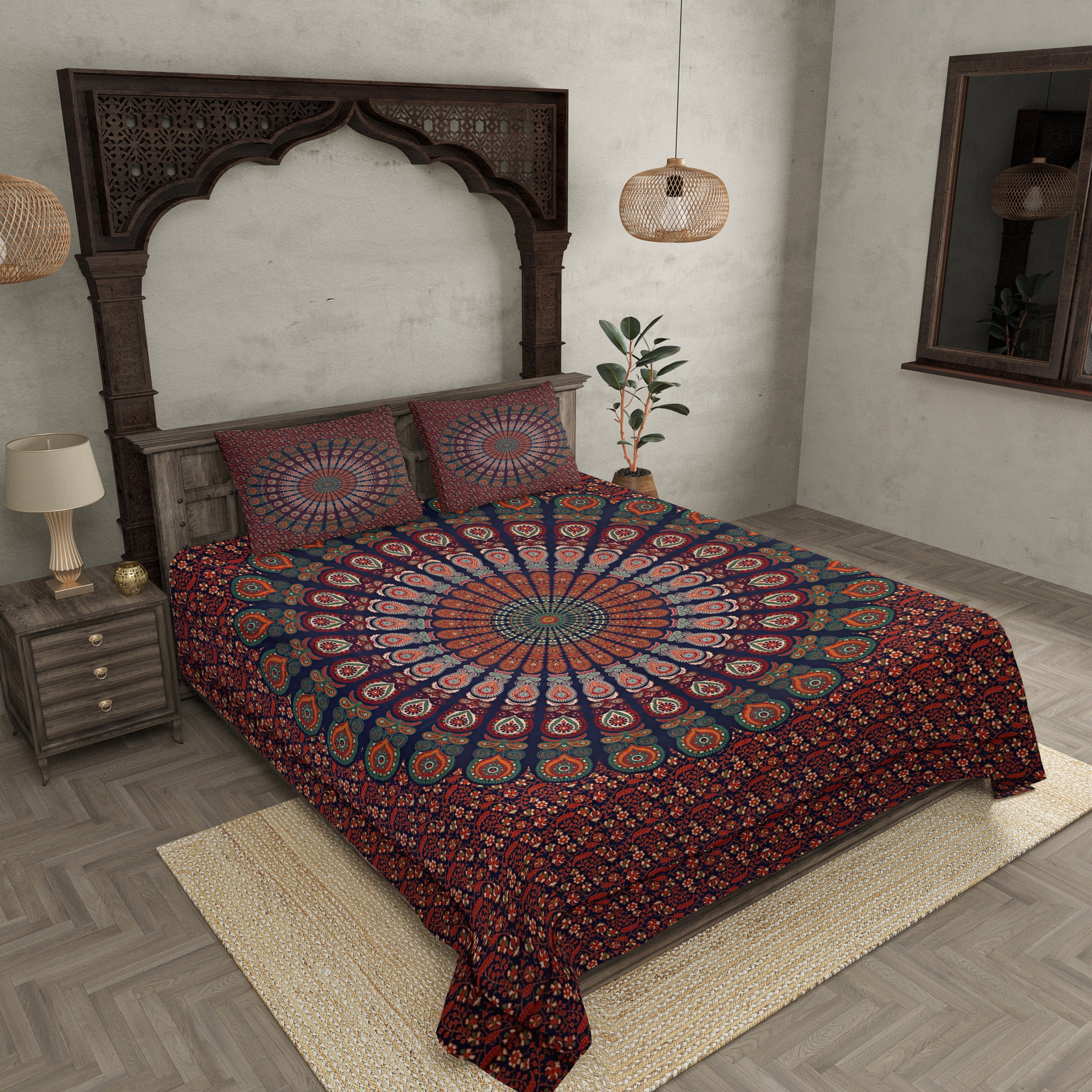 Double Bedsheet Blood Red Color Rangoli Print Double Bedsheet Blood Red Color Rangoli Print