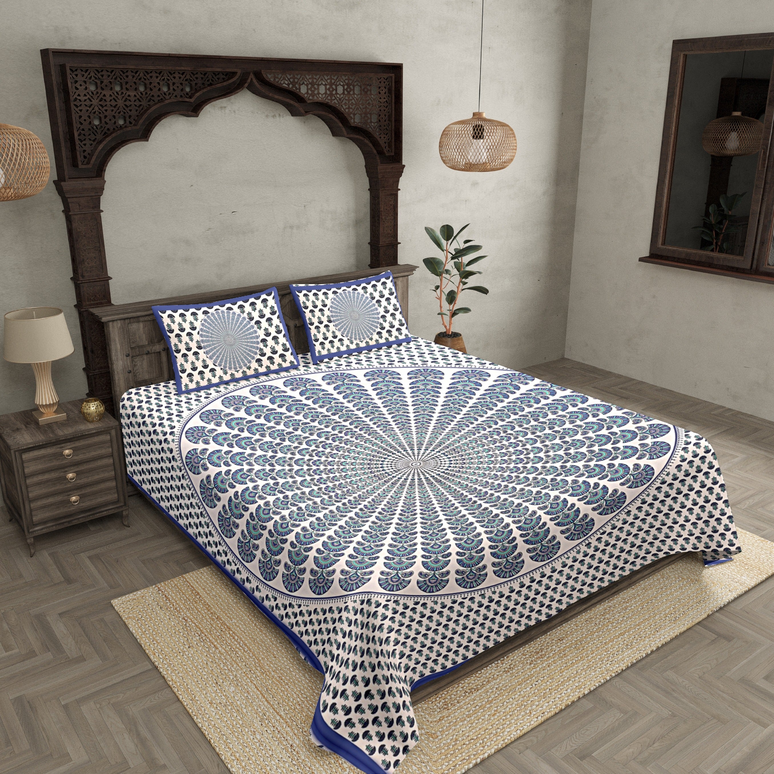 Elegance in Blue Jaipur Fabric Double Bed Sheet