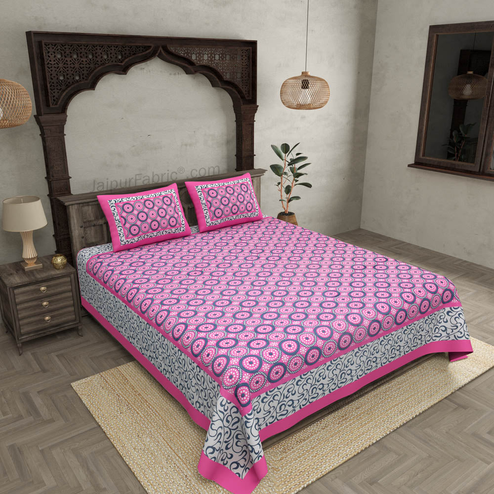 Pink Border White Base Circle Pattern Screen Print Cotton Double Bed Sheet Pink Border White Base Circle Pattern Screen Print Cotton Double Bed Sheet