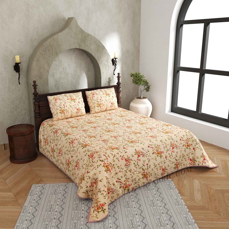 Amber Gold & Summer Lotus 240 TC Pure Cottong Single Bedsheet Combo Amber Gold & Summer Lotus 240 TC Pure Cottong Single Bedsheet Combo