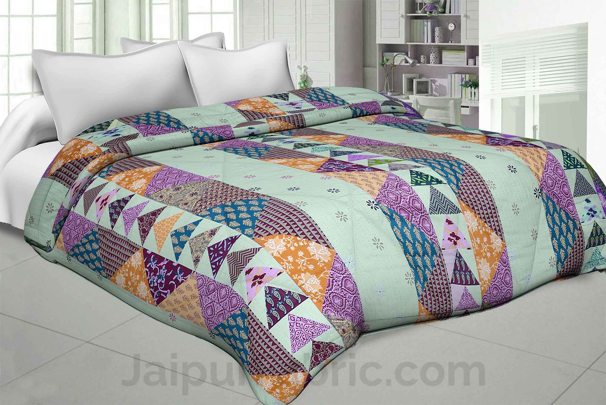Jaipur Mela Hand Block Printed Sea Green Trees and Flowers Double Bed Quilt Jaipur Mela Hand Block Printed Sea Green Trees and Flowers Double Bed Comforter