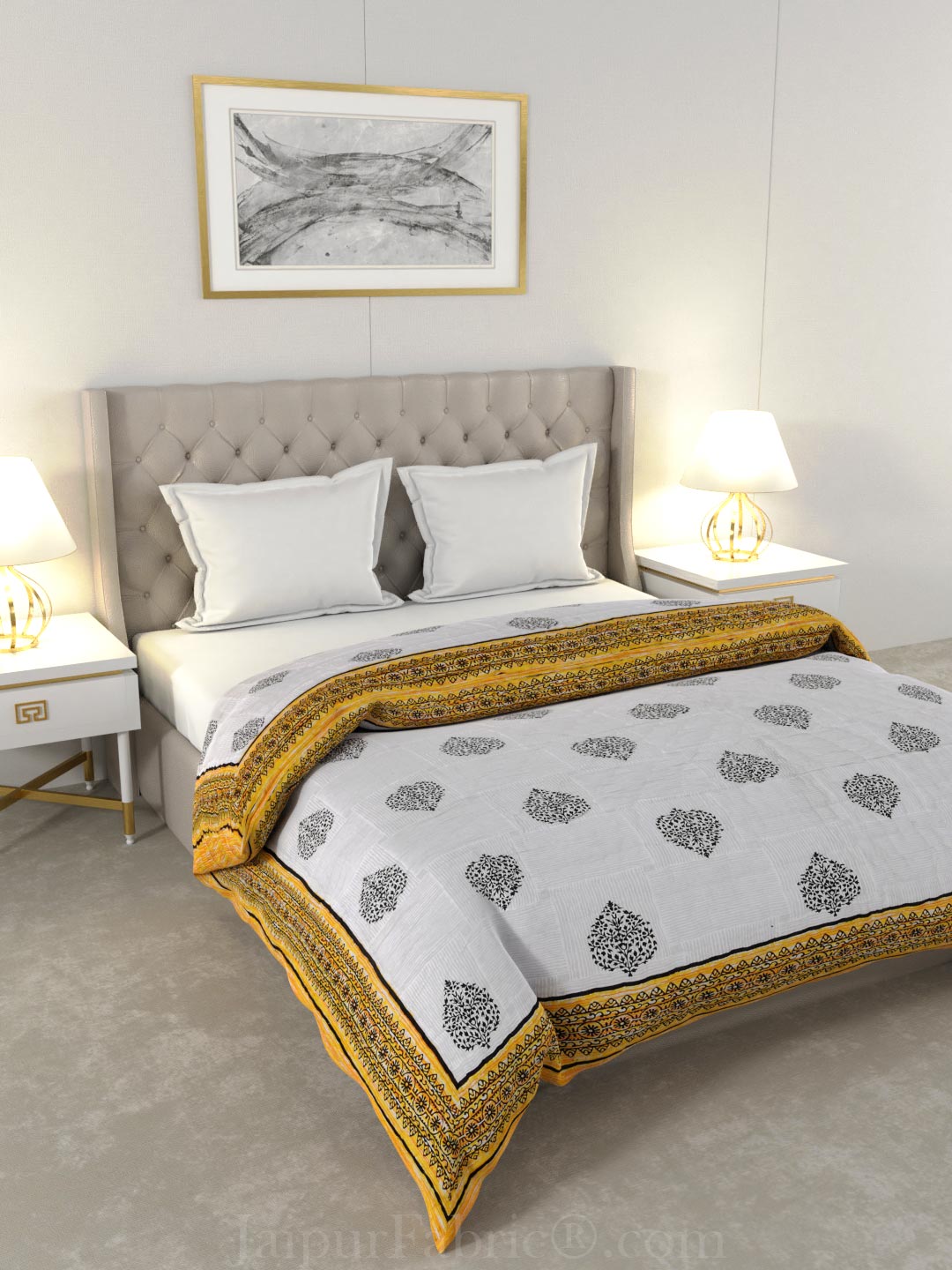 Beautiful Plarsh Floral Premium Hand Blocks of India Cotton Double Bed Quilt Beautiful Plarsh Floral Premium Hand Blocks of India Cotton Double Bed Comforter