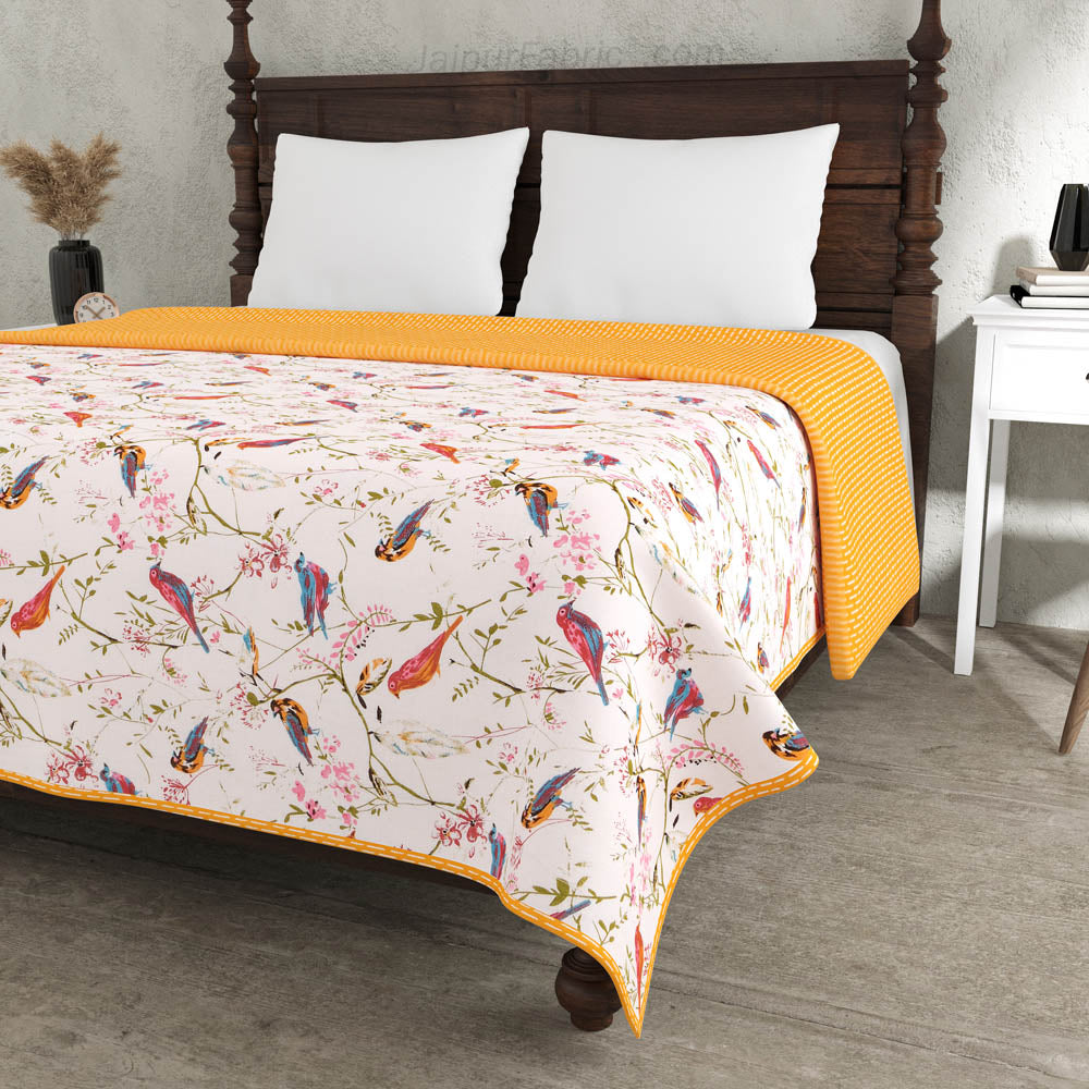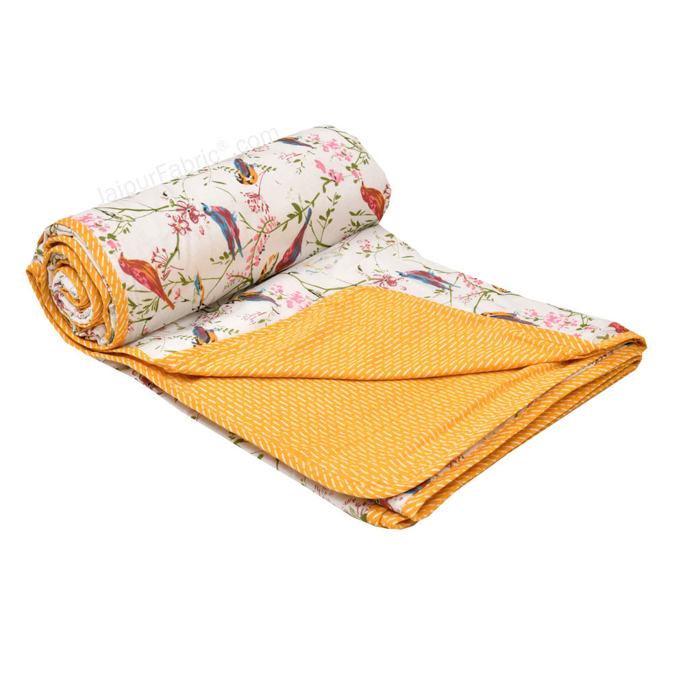 Parakeets Yellow Double Bed Dohar Blanket
