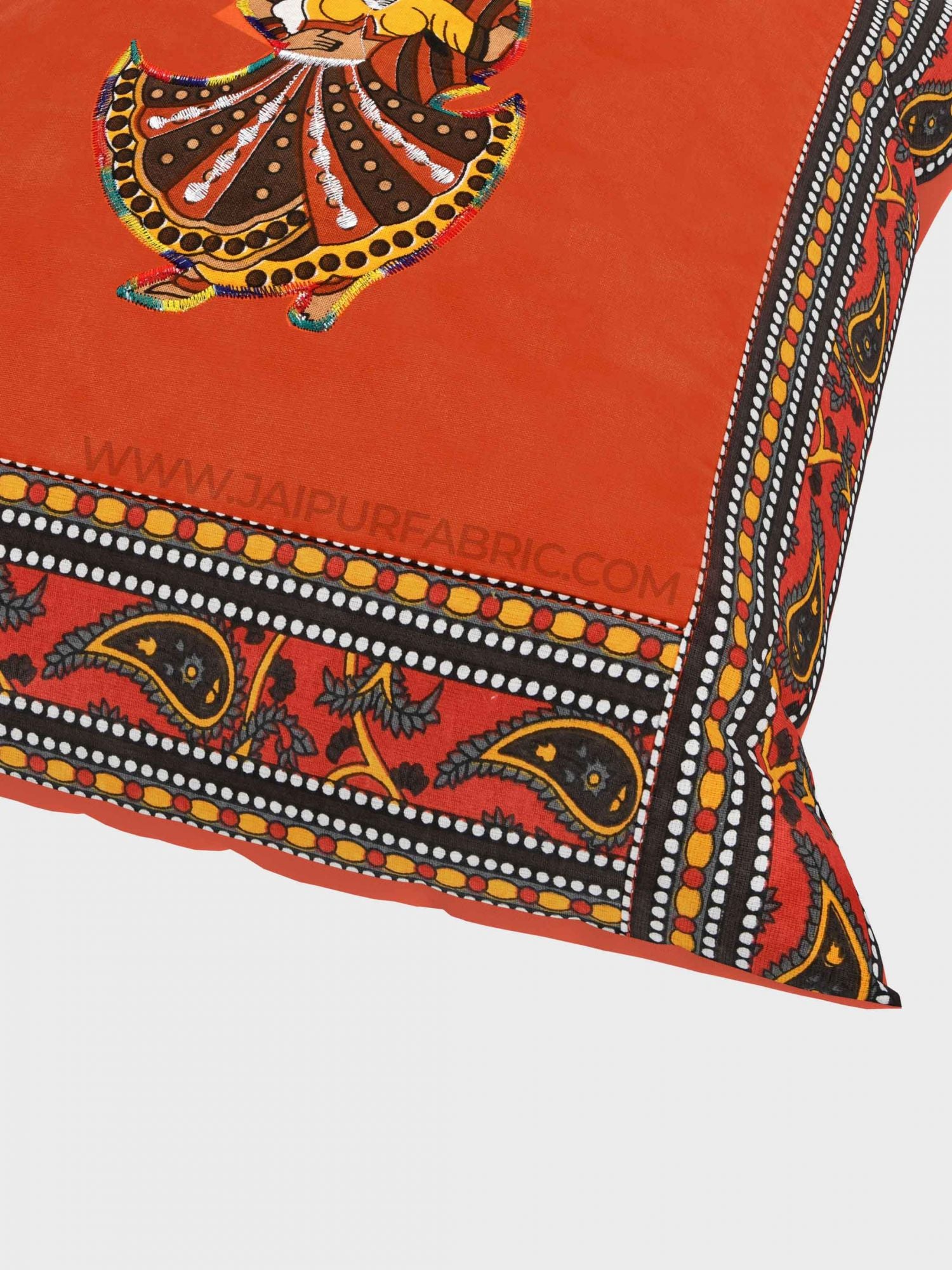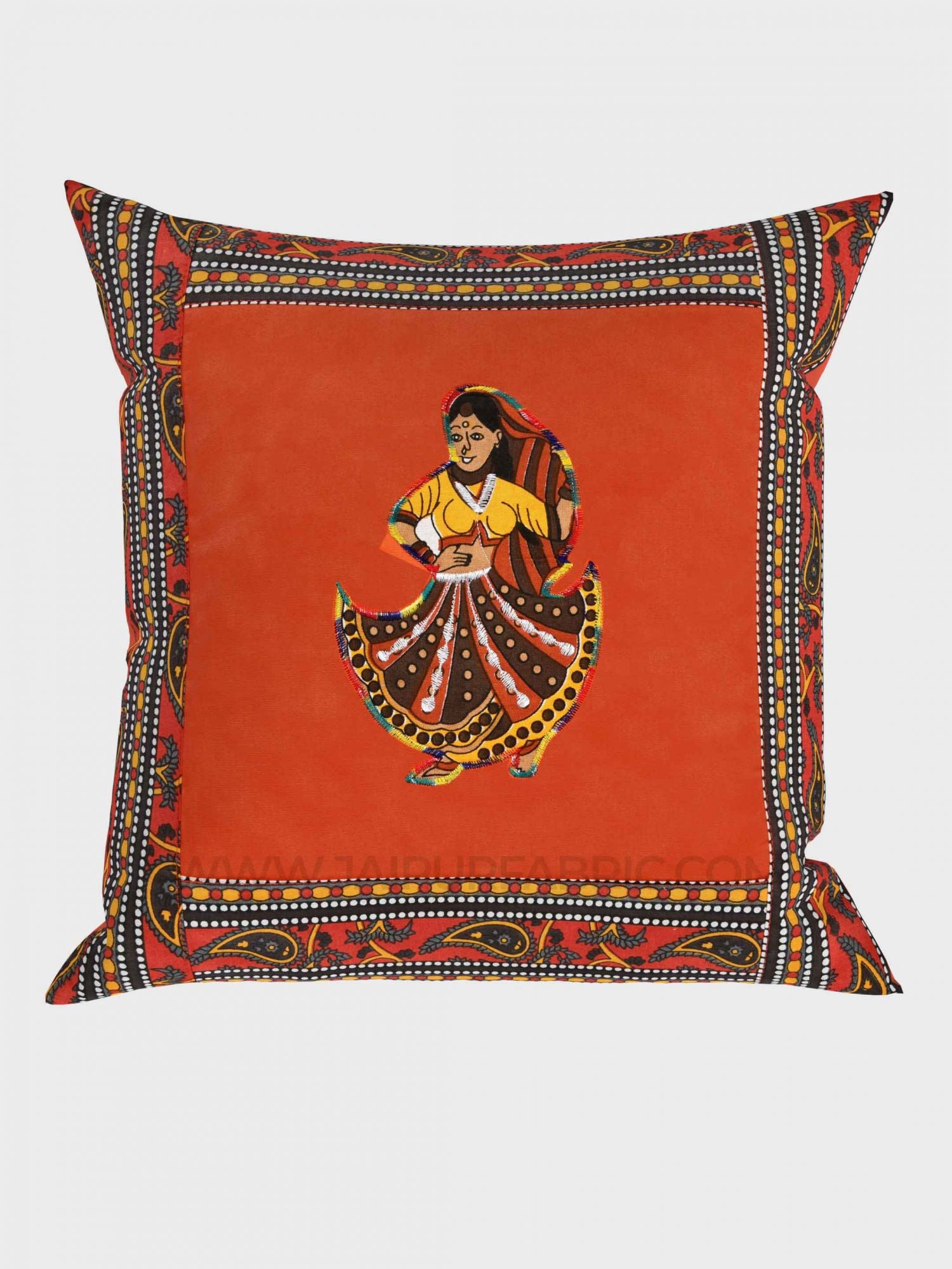 💃 Applique Orange Rajasthani Dance Jaipuri Hand Made Embroidery Patch Work Cushion Cover 💃