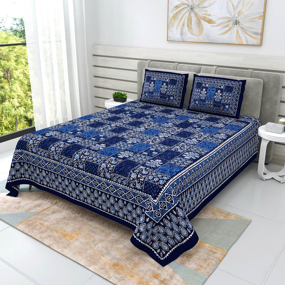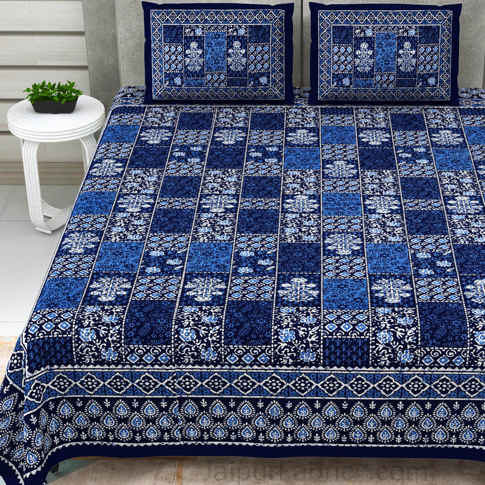 Blue Floral Polygons Dabu Print Jaipuri Double Bedsheet 🌸