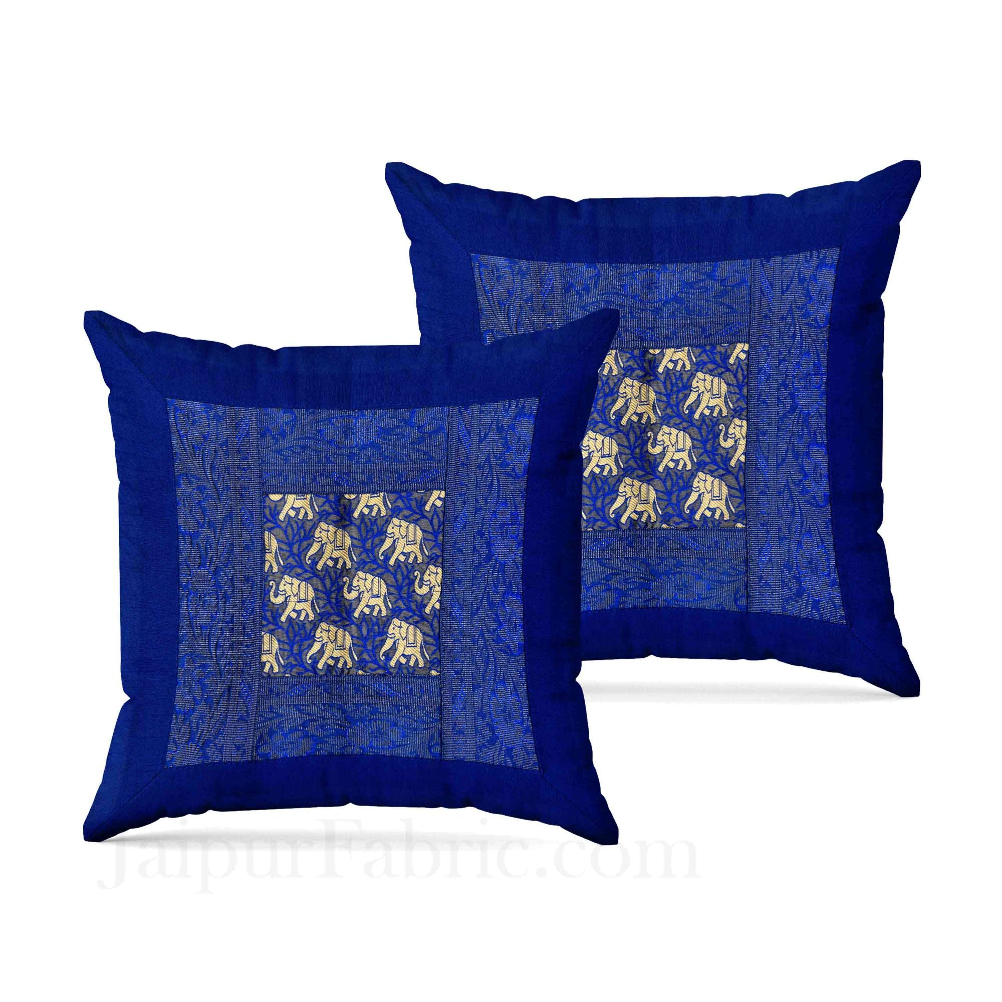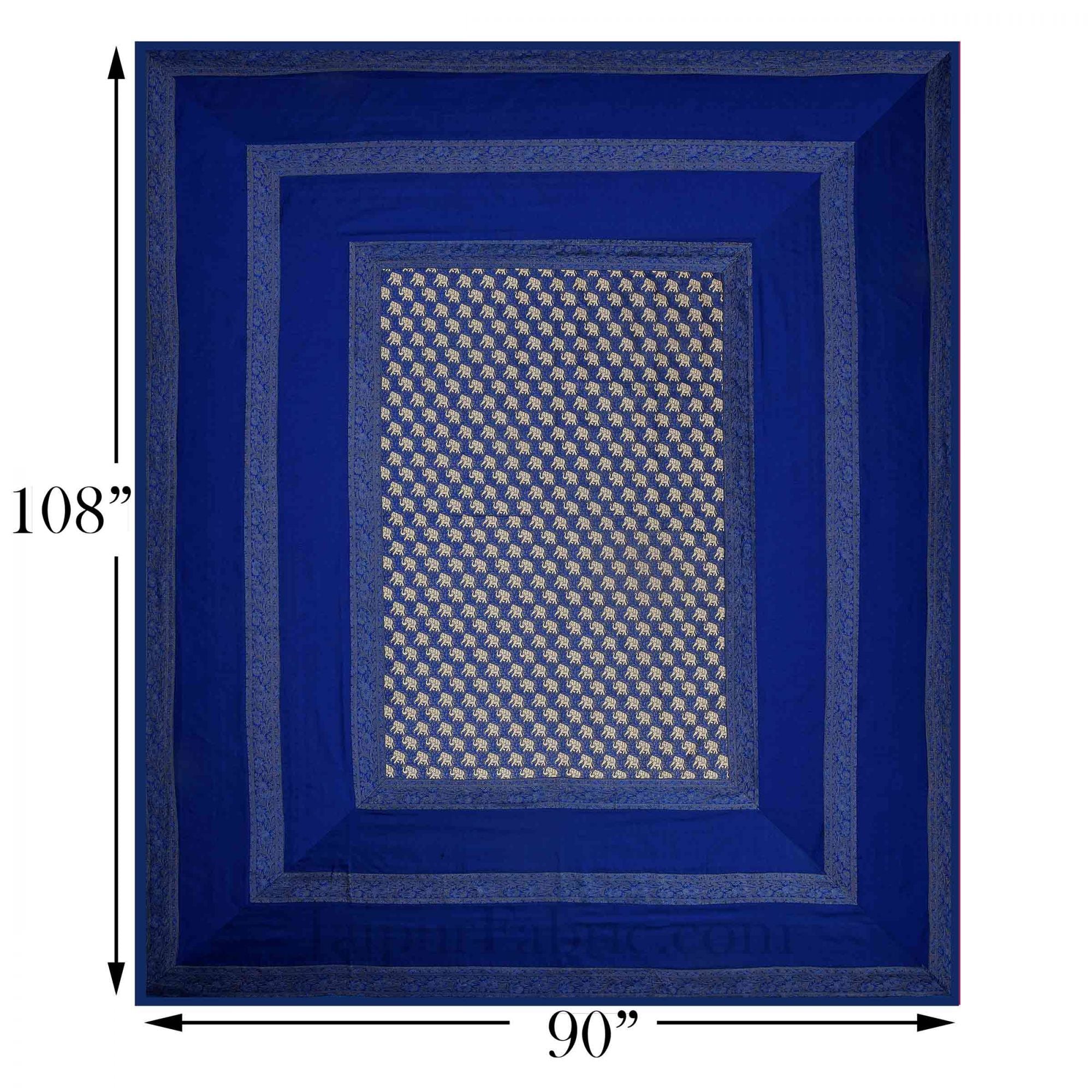 Blue Rajasthani Zari Embroidered Lace Elephant Thread Work Silk Double Bed Sheet 🦁💙