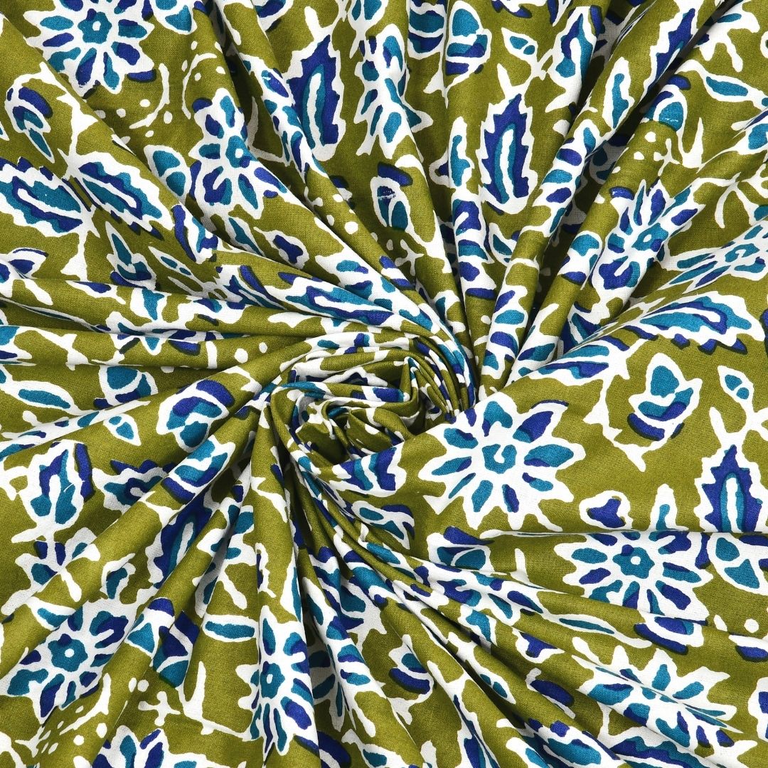 Classic Buta Print Leaf Green Double Bedsheet Pure Cotton