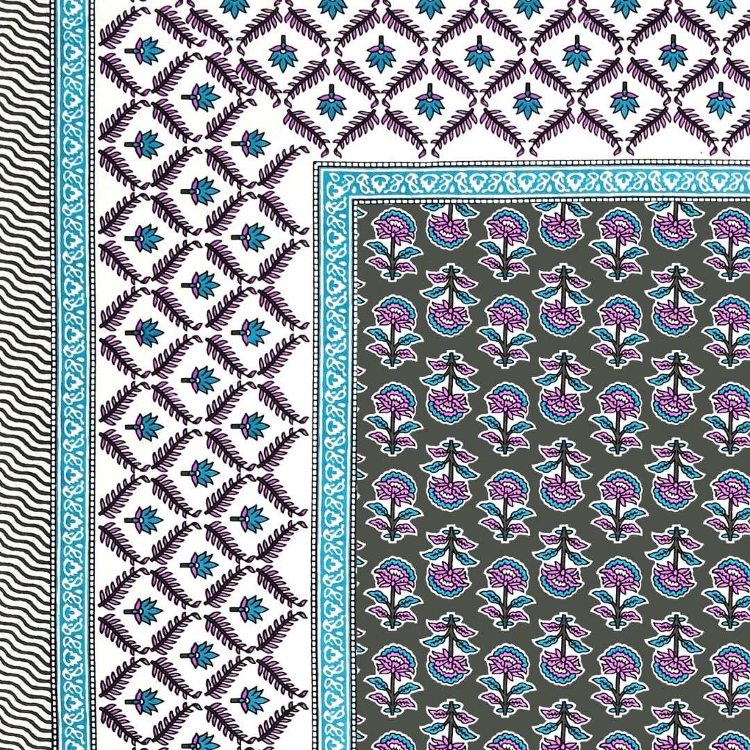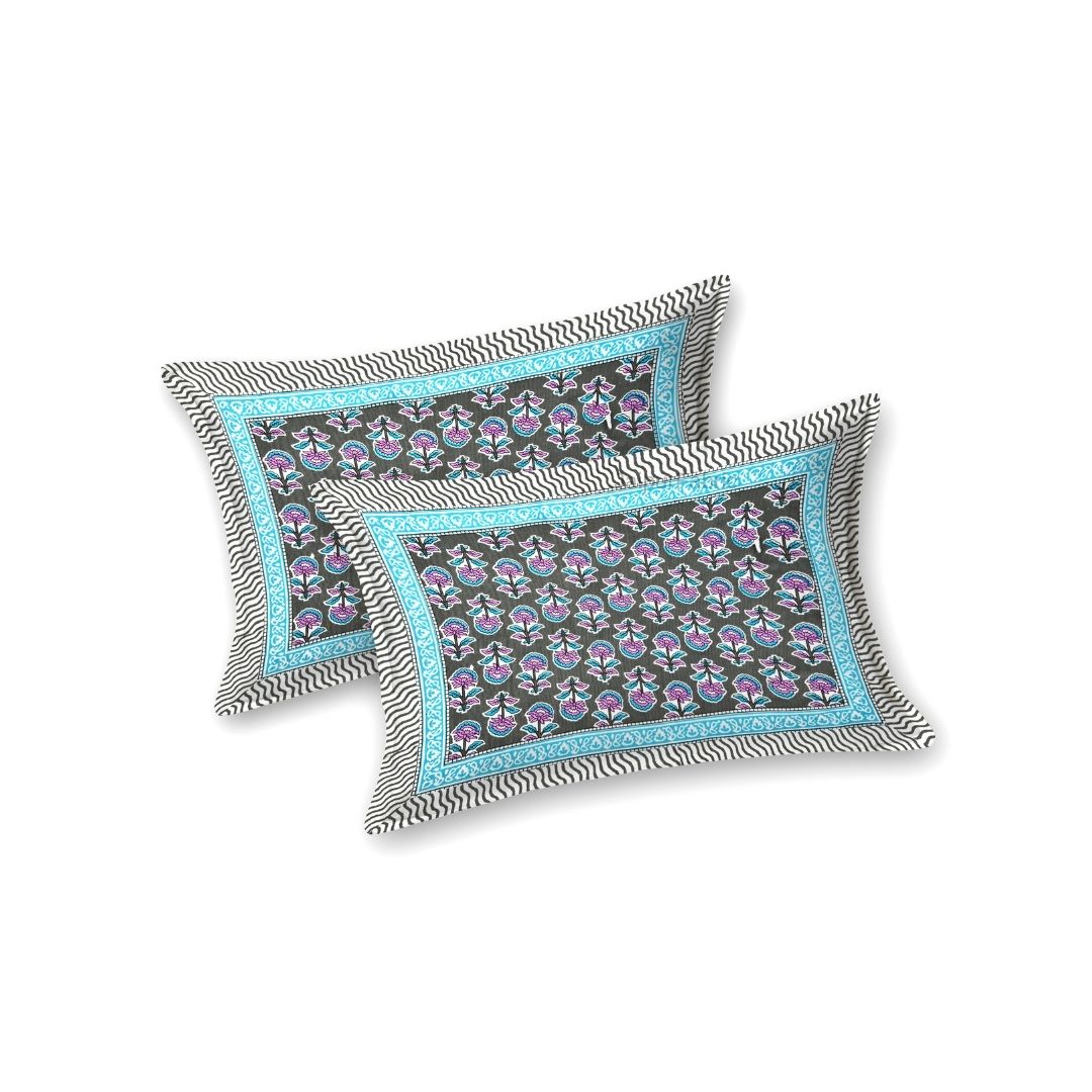 Classic Sanganeri Buti Charcoal Grey Double Bedsheet Pure Cotton