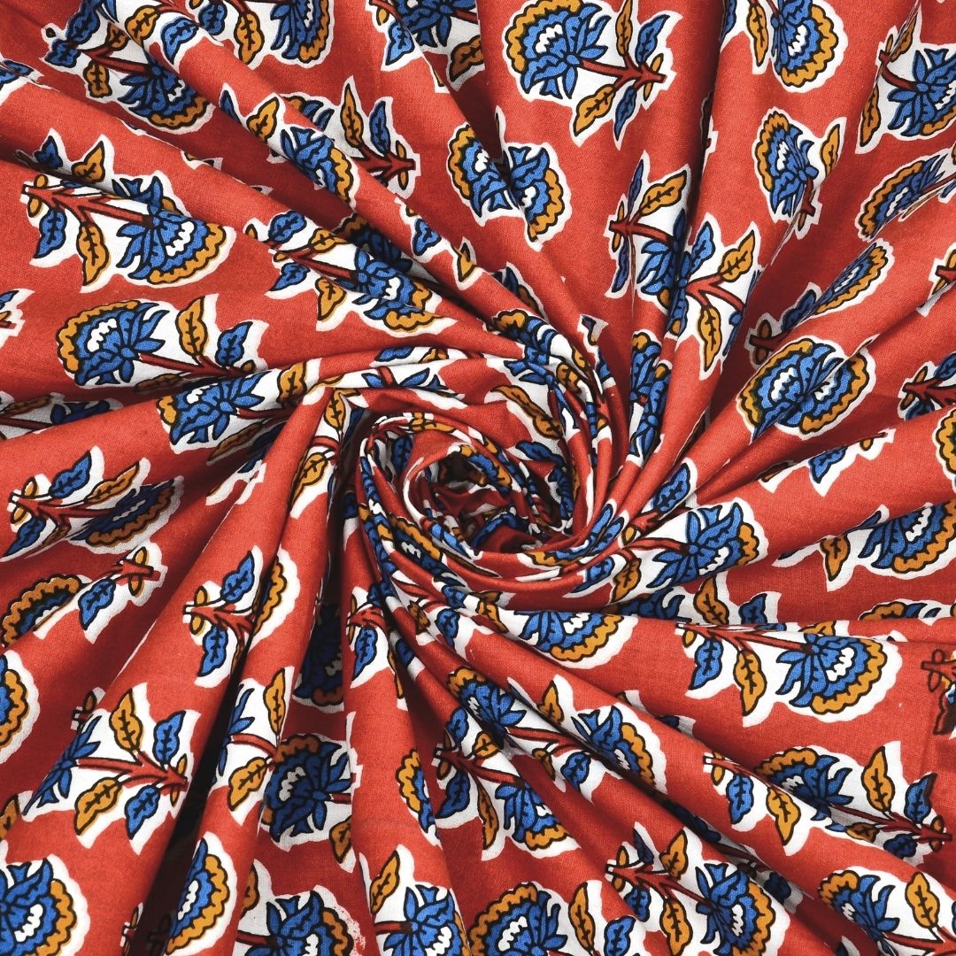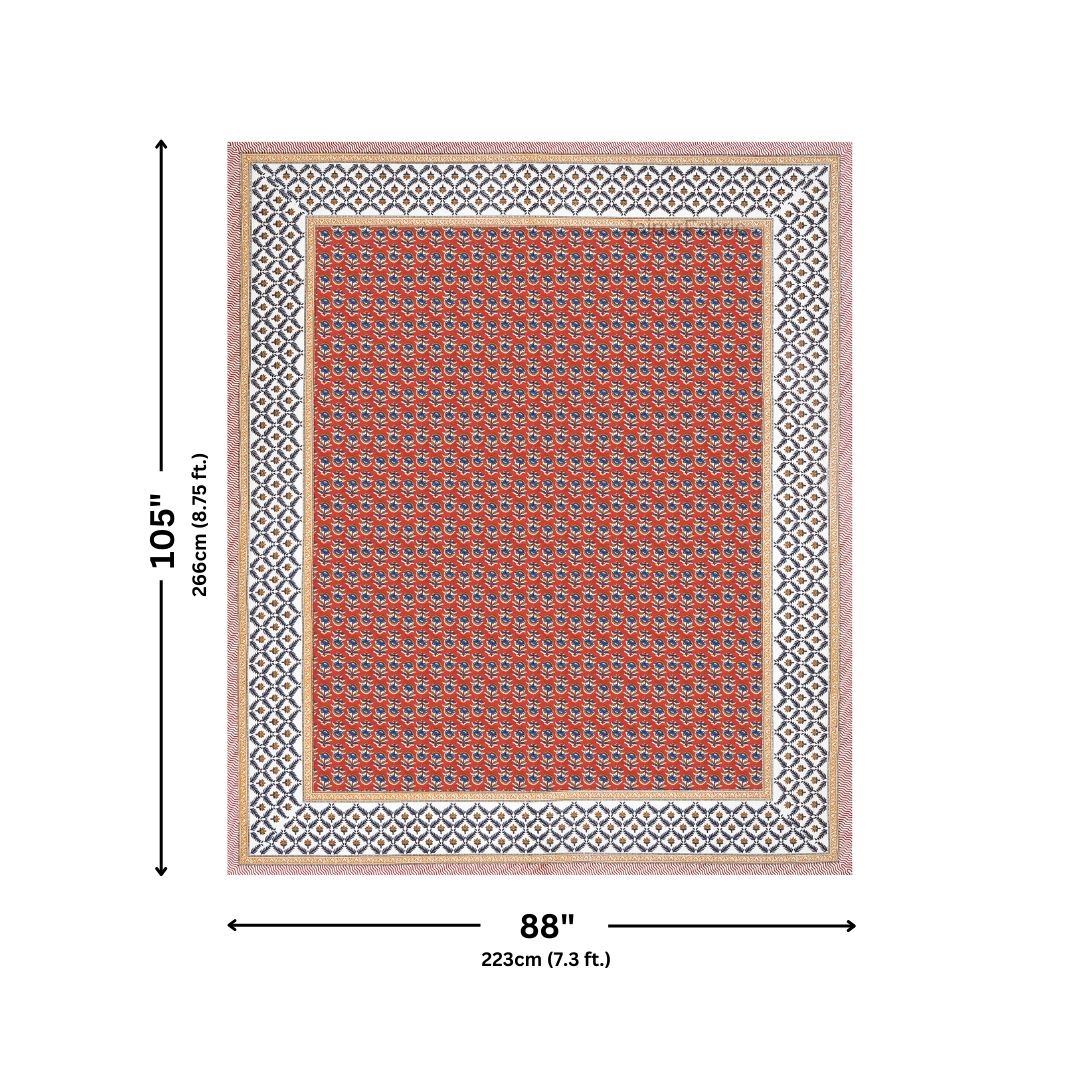 Classic Sanganeri Buti Scarlet Red Double Bedsheet Pure Cotton