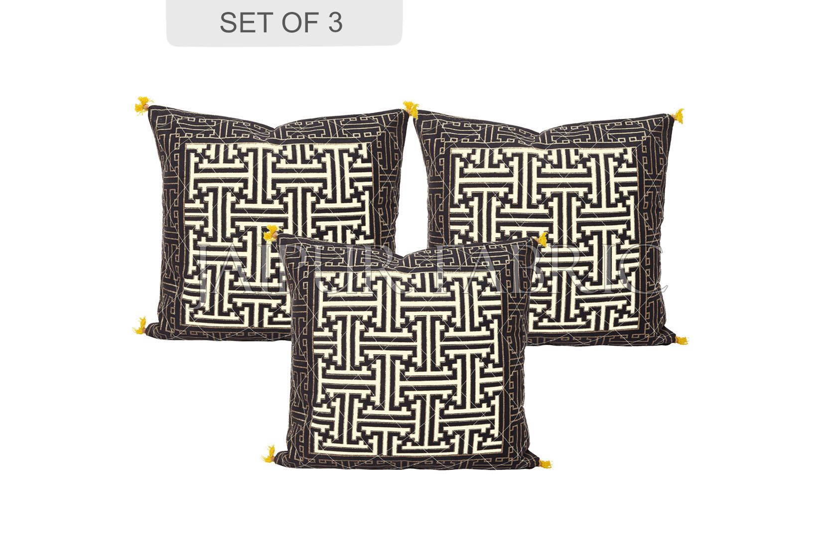 Add a layer of style and comfort to your living space with these premium Cream Base Black Border Maze Design Cotton Cushion Covers. A chic and comfortable home accessory that complements all interior styles! 🏡