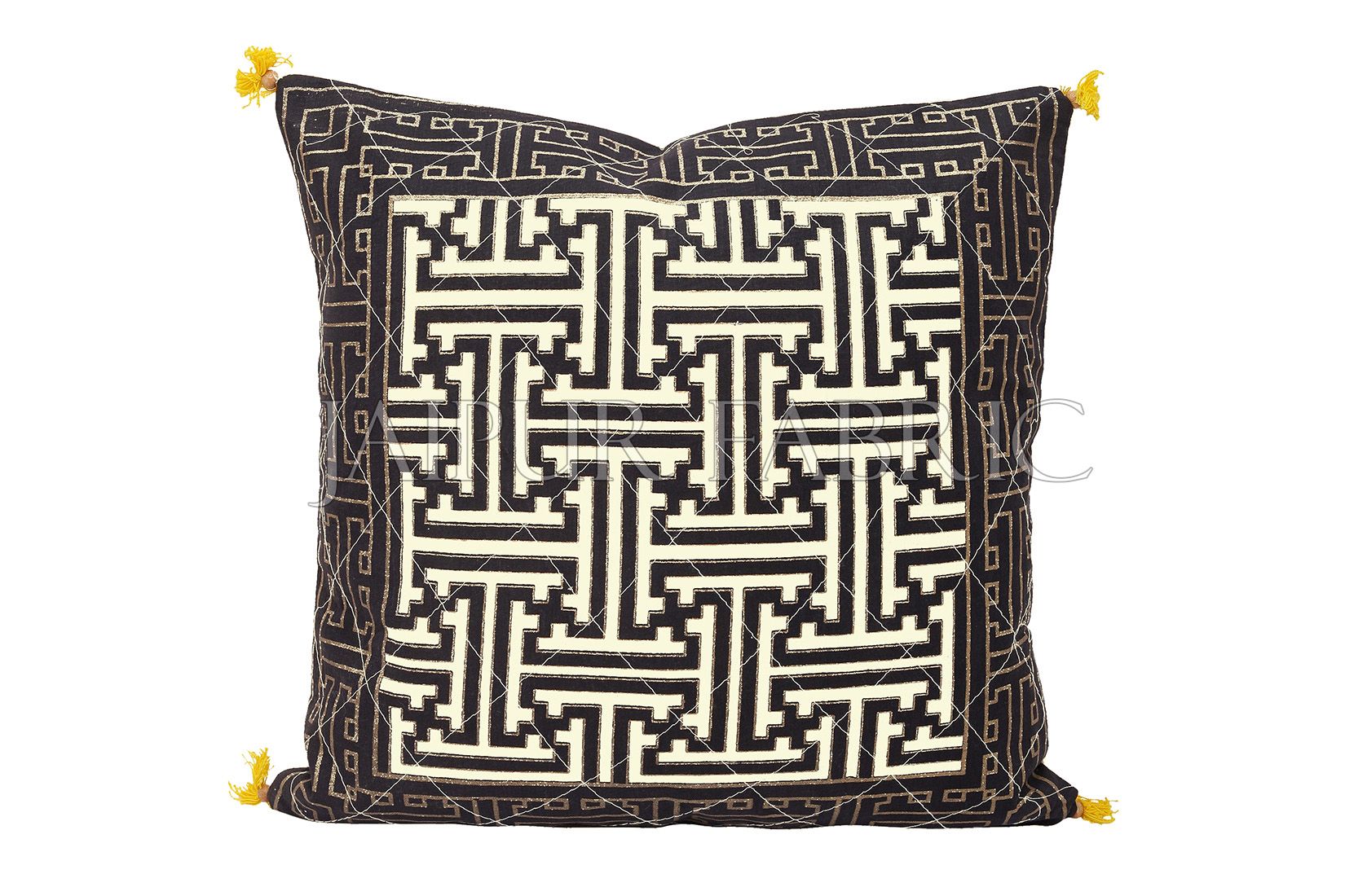 ✨ Cream Base Black Border Maze Design Cotton Cushion Cover ✨