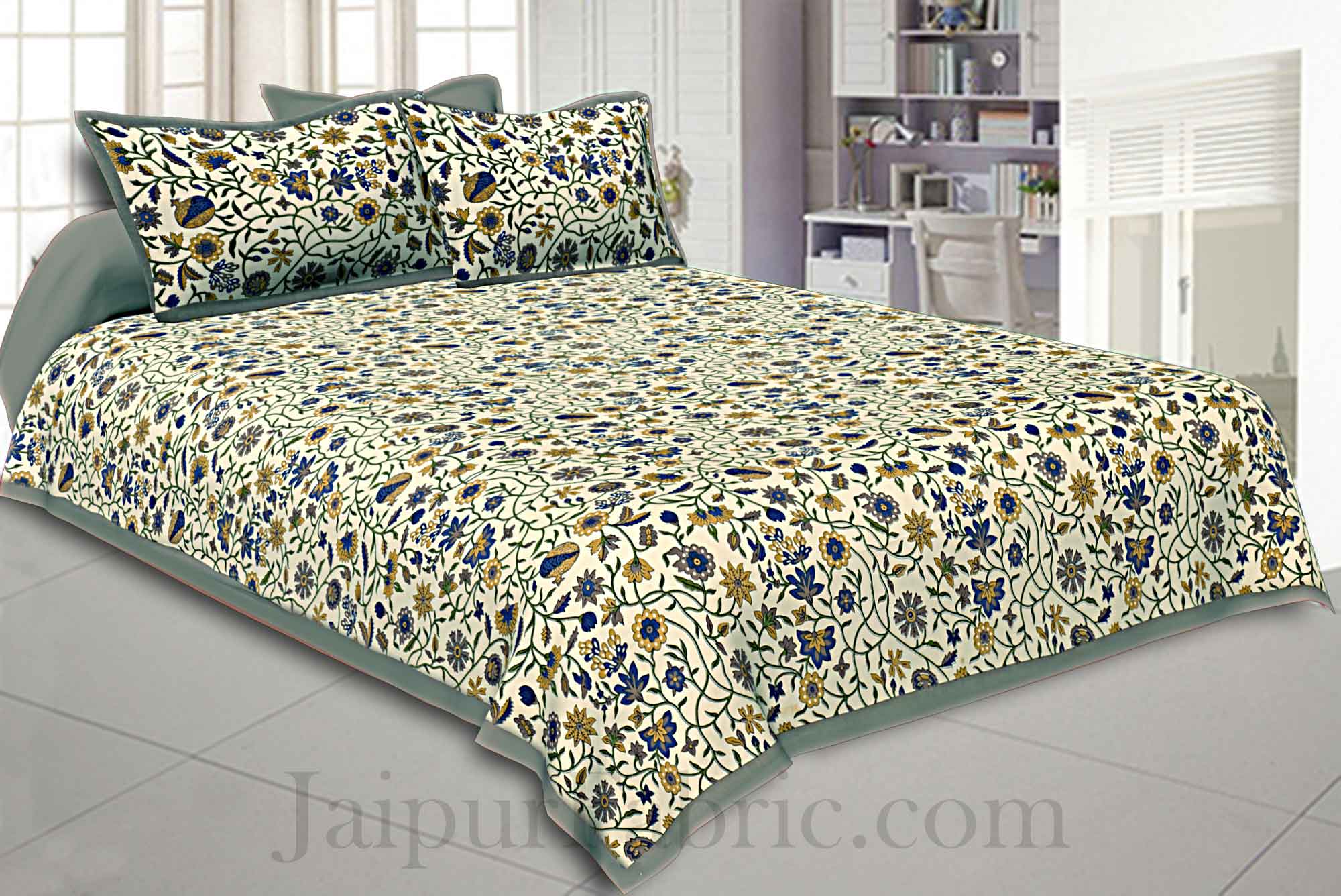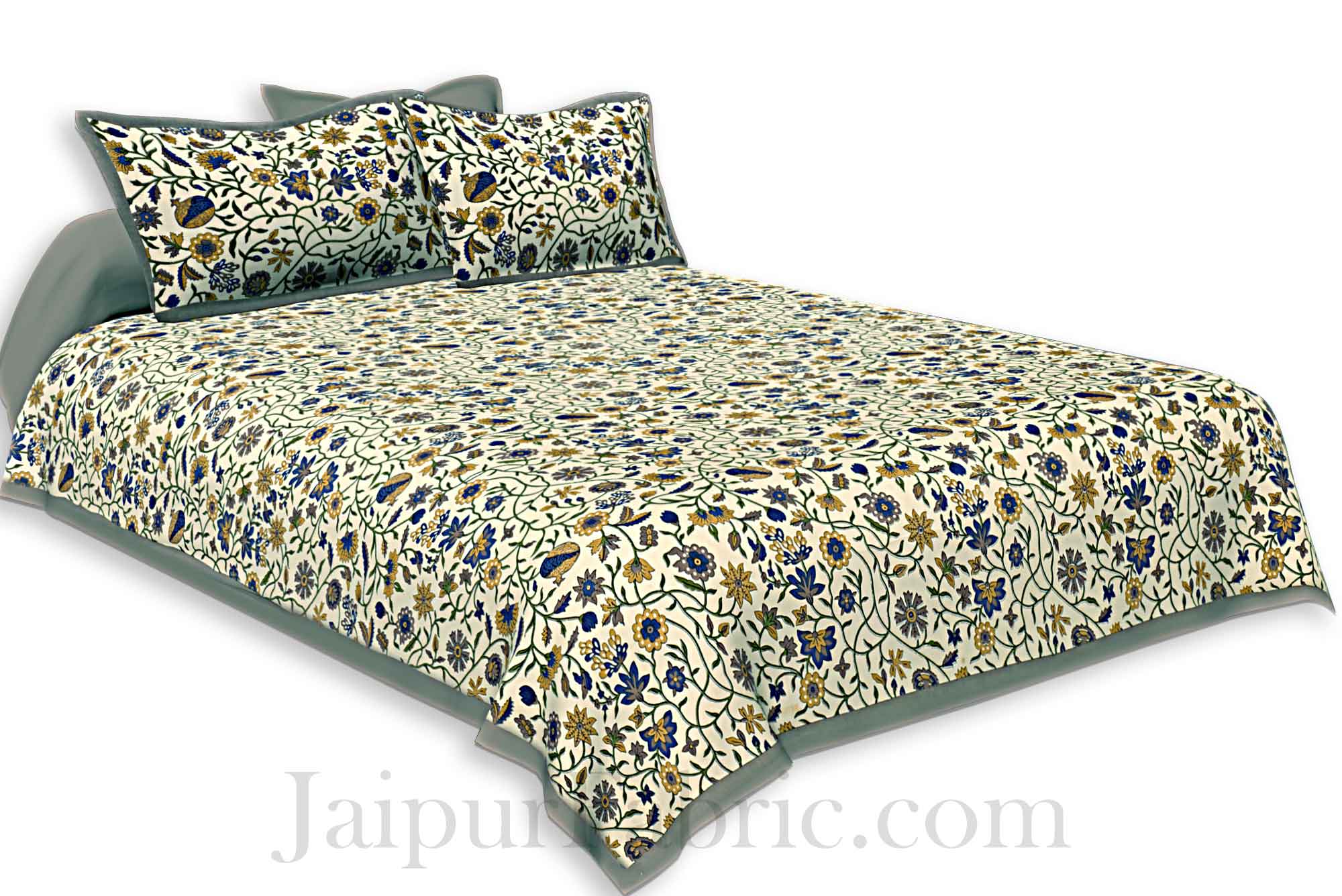 🌿 Double Bedsheet with Grey Border Branch of Pomegranate – Elegant Comfort with a Touch of Nature 🛏️✨