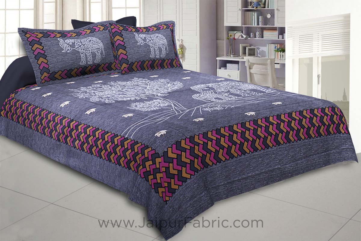 ✨ Bring a Touch of Rajasthan’s Charm to Your Bedroom with the Elephant Love Blue Giza Cotton Double Bedsheet! ✨