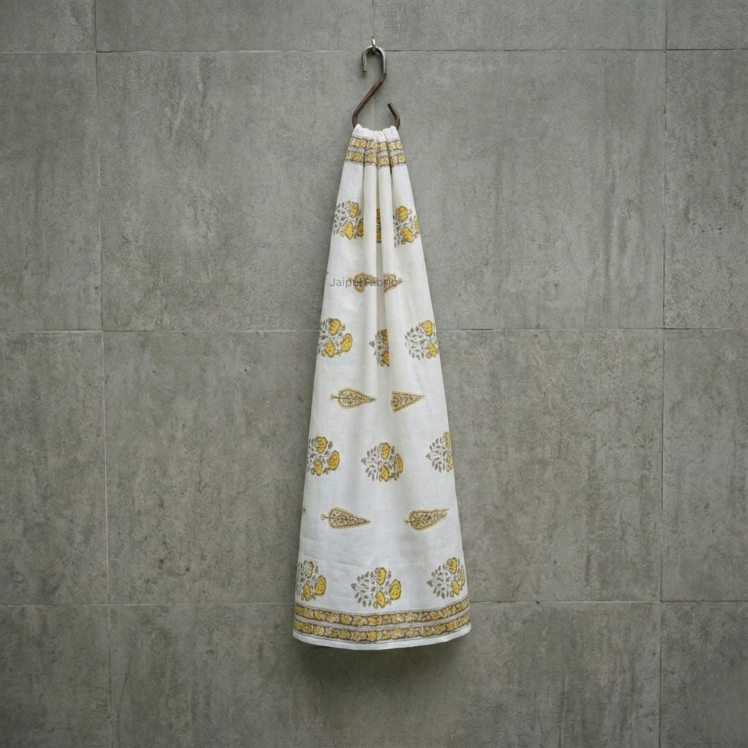 Elevate your daily bath routine with the artistic charm of our Hand Block Print Bath Towel. Expertly crafted from 100% pure cotton slub, this towel offers a unique textured finish that is soft against the skin and highly absorbent.