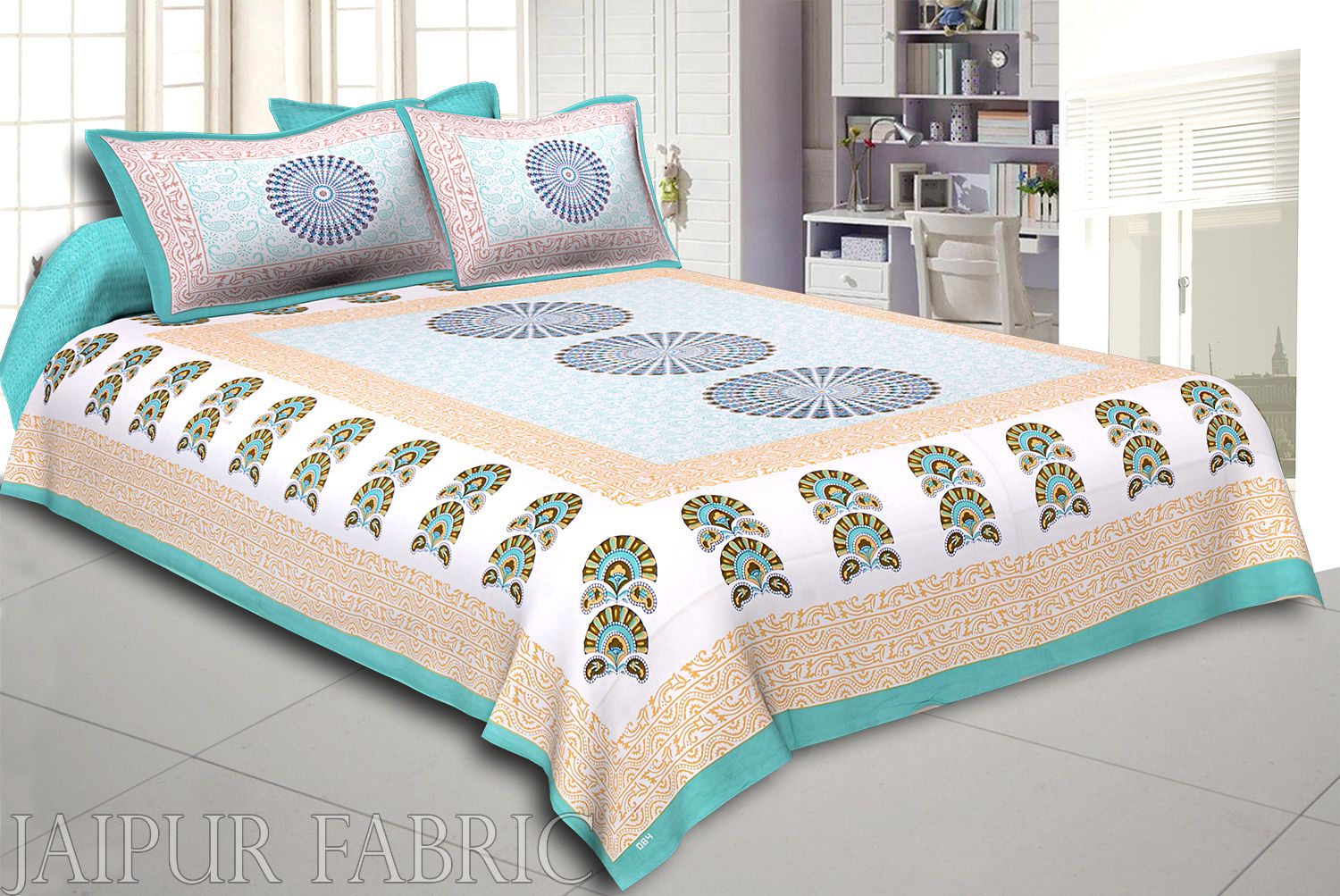Embrace the beauty of Rajasthan's heritage with the Green Border Sanganeri Printed Cotton Double Bed Sheet – a perfect blend of tradition, style, and comfort. 🌿🌼