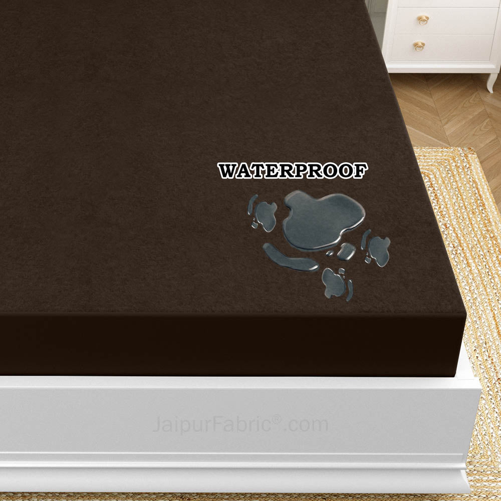 Heavy Quality Dark Brown Terry Cotton Waterproof and Elastic Fitted Water Resistant Ultra Soft Double Mattress Cover