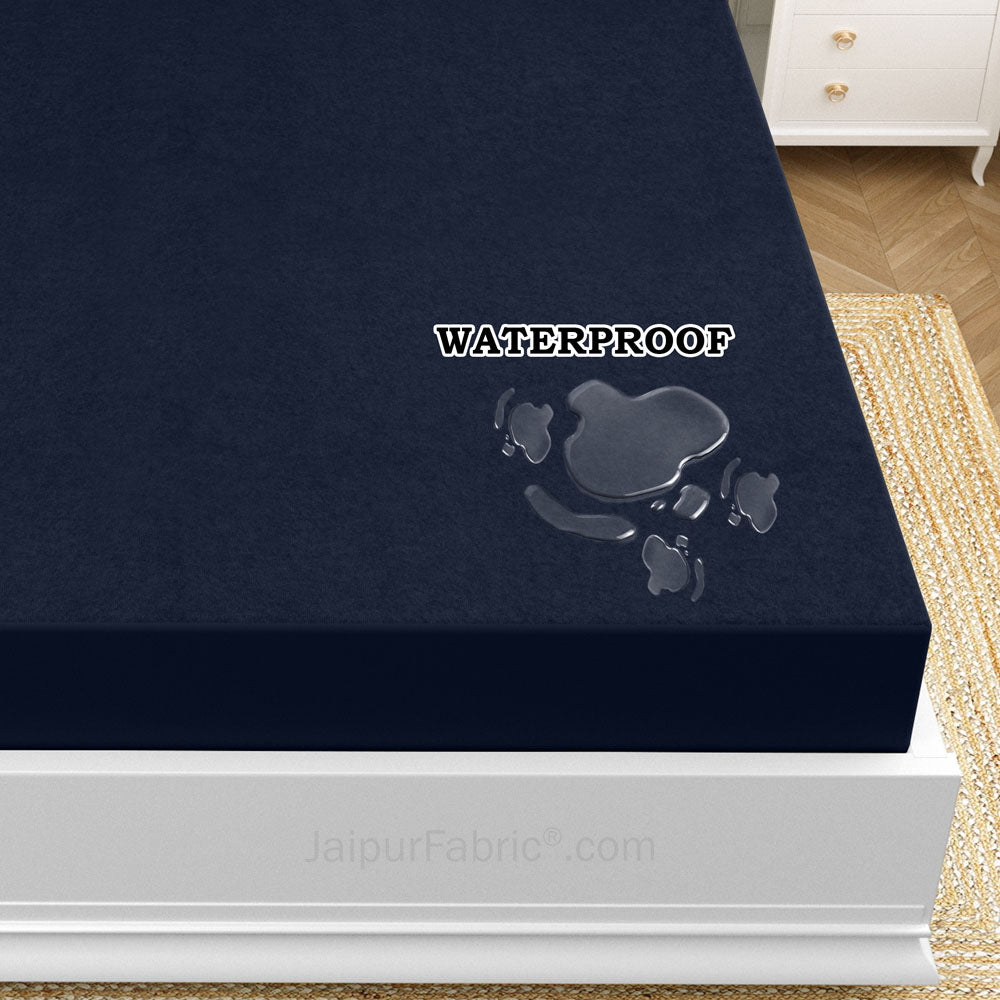 Heavy Quality Navy Blue Terry Cotton Waterproof and Elastic Fitted Through Out Double Mattress Protector