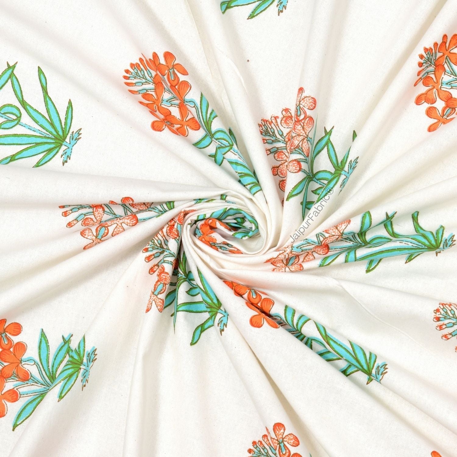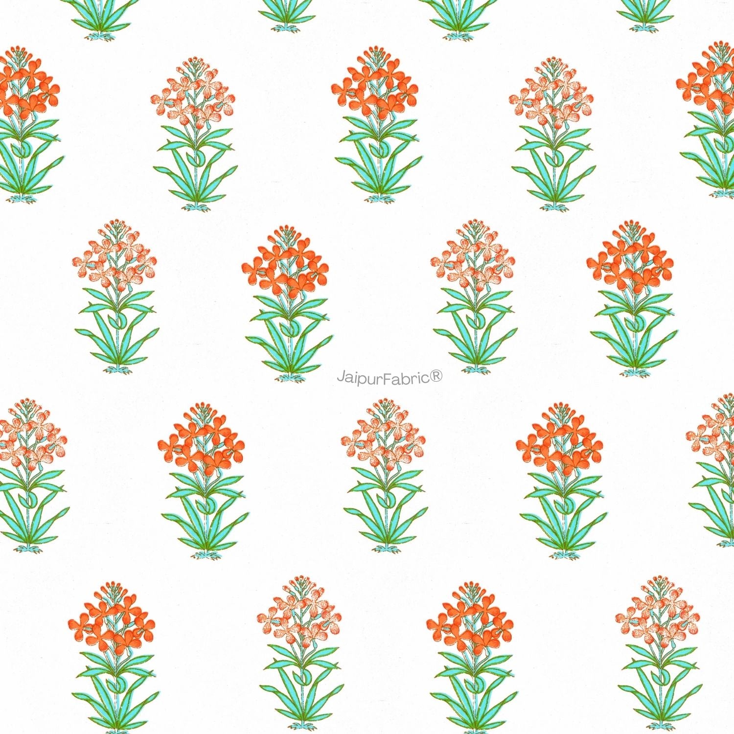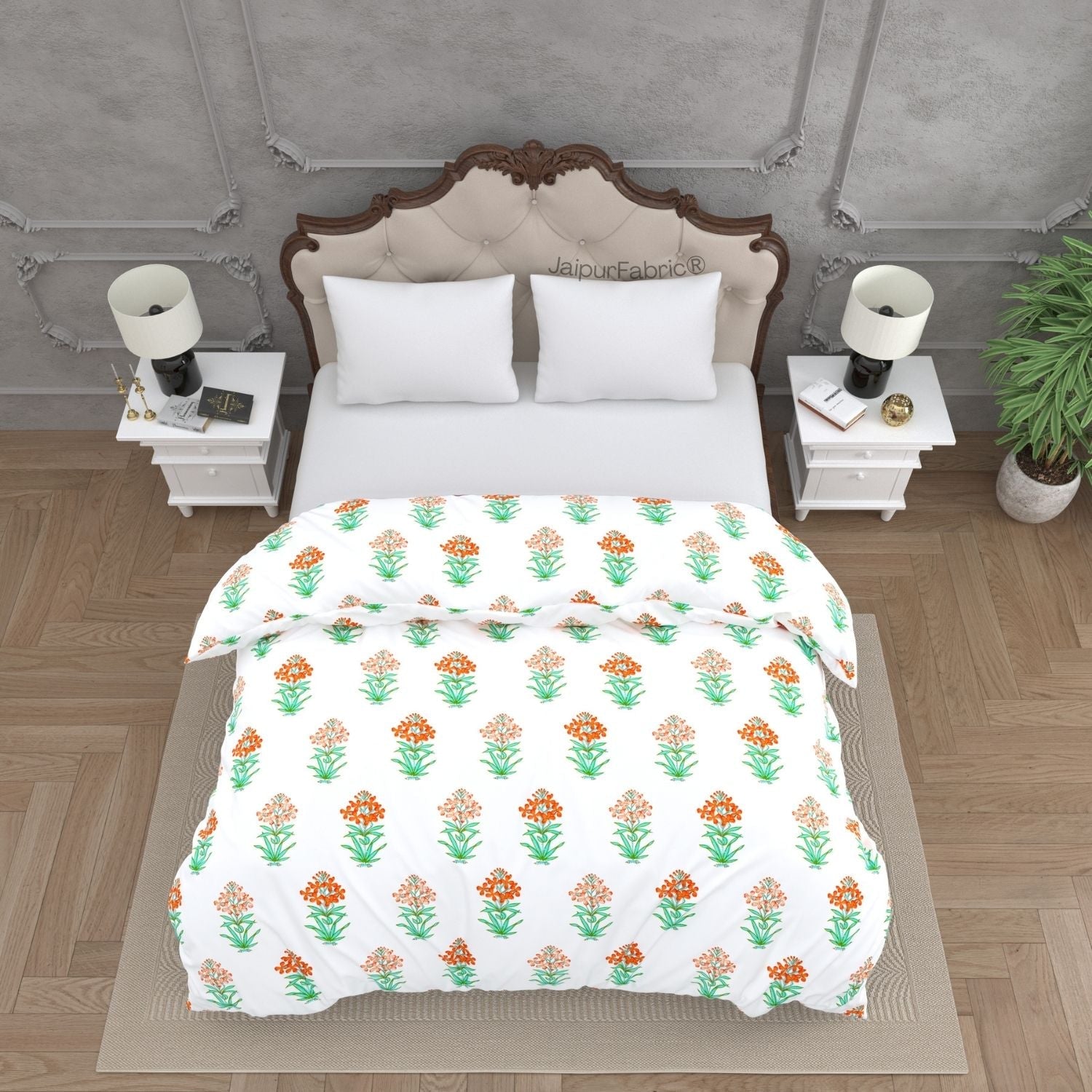 🌟 Jaipur Garden Hand Block Printed Orange Blossom and Green Leaf Double Bed Comforter💫