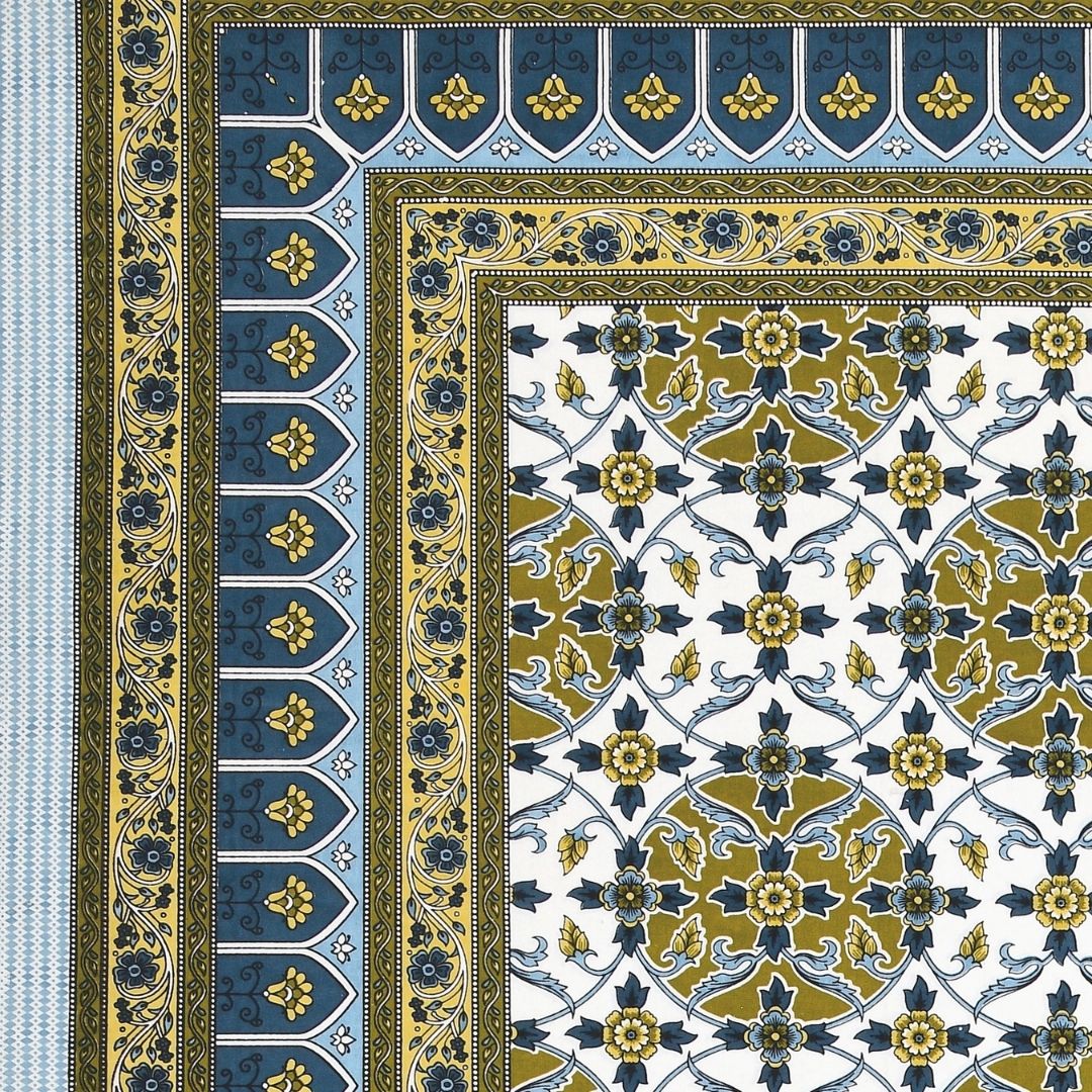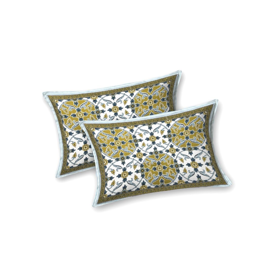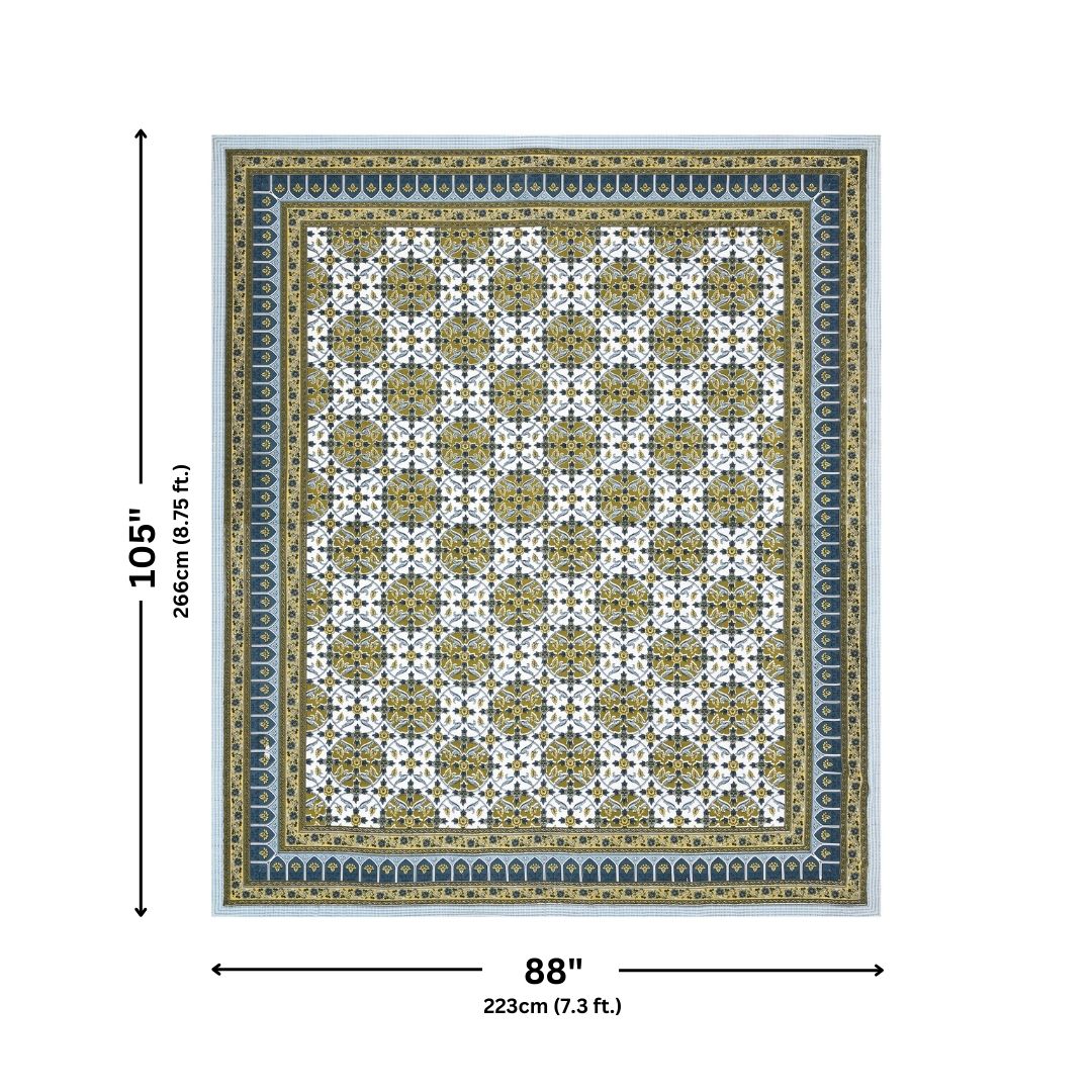 Majestic Jaipuri Mandala Mustard Olive Double Bedsheet Pure Cotton