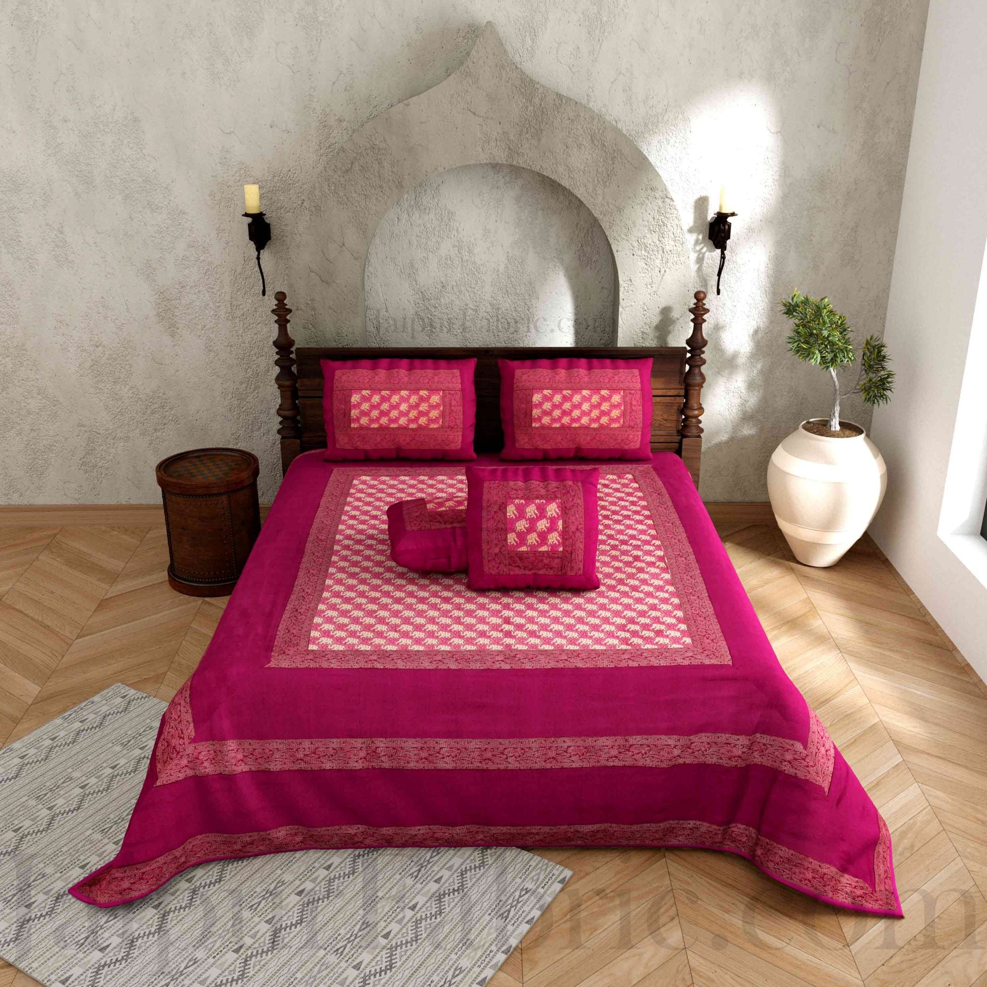 Indulge in the richness of Rajasthani heritage with the Maroon Rajasthani Zari Embroidered Lace Work Silk Double Bed Sheet. Crafted from silk and hand block, this exquisite bedding piece showcases traditional artistry with zari embroidery and lace work. Perfect for adding a royal touch to your bedroom décor, it offers a combination of elegance, luxury, and timeless beauty. ✨🌹