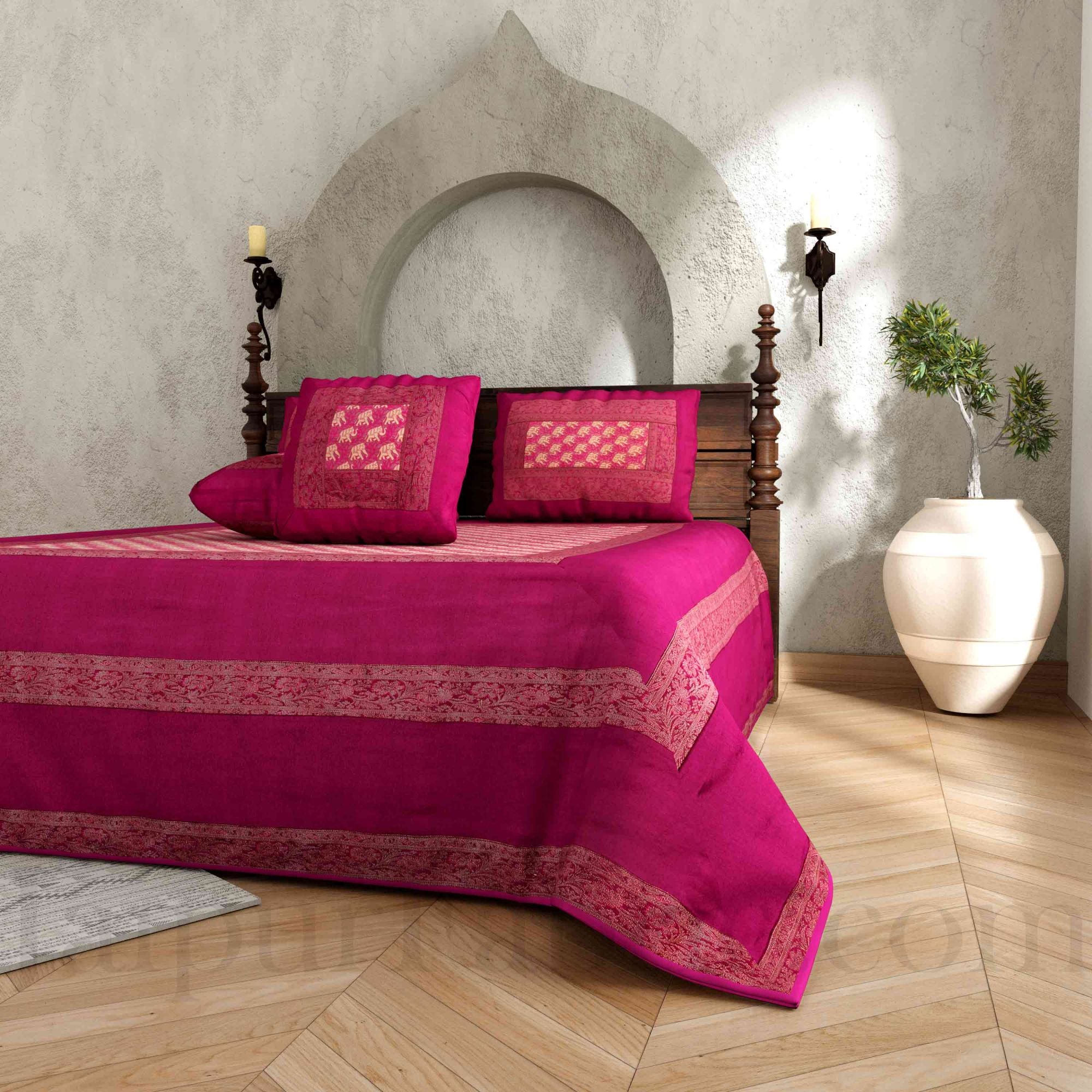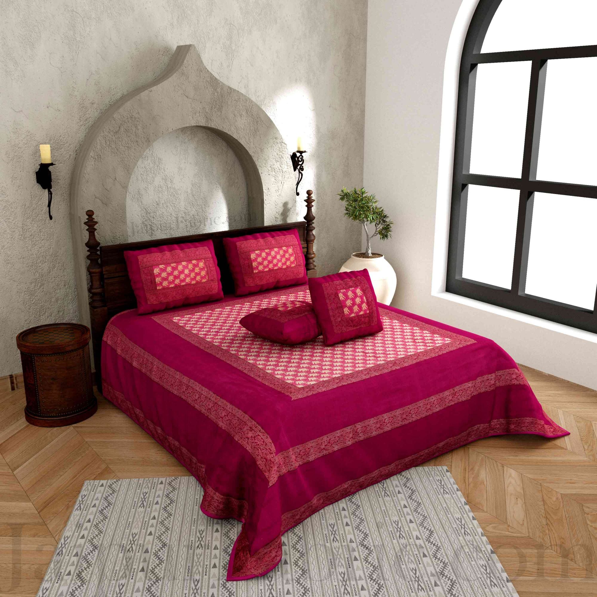 Maroon Rajasthani Zari Embroidered Lace Work Silk Double Bed Sheet – A Royal Touch for Your Bedroom 🛏️👑