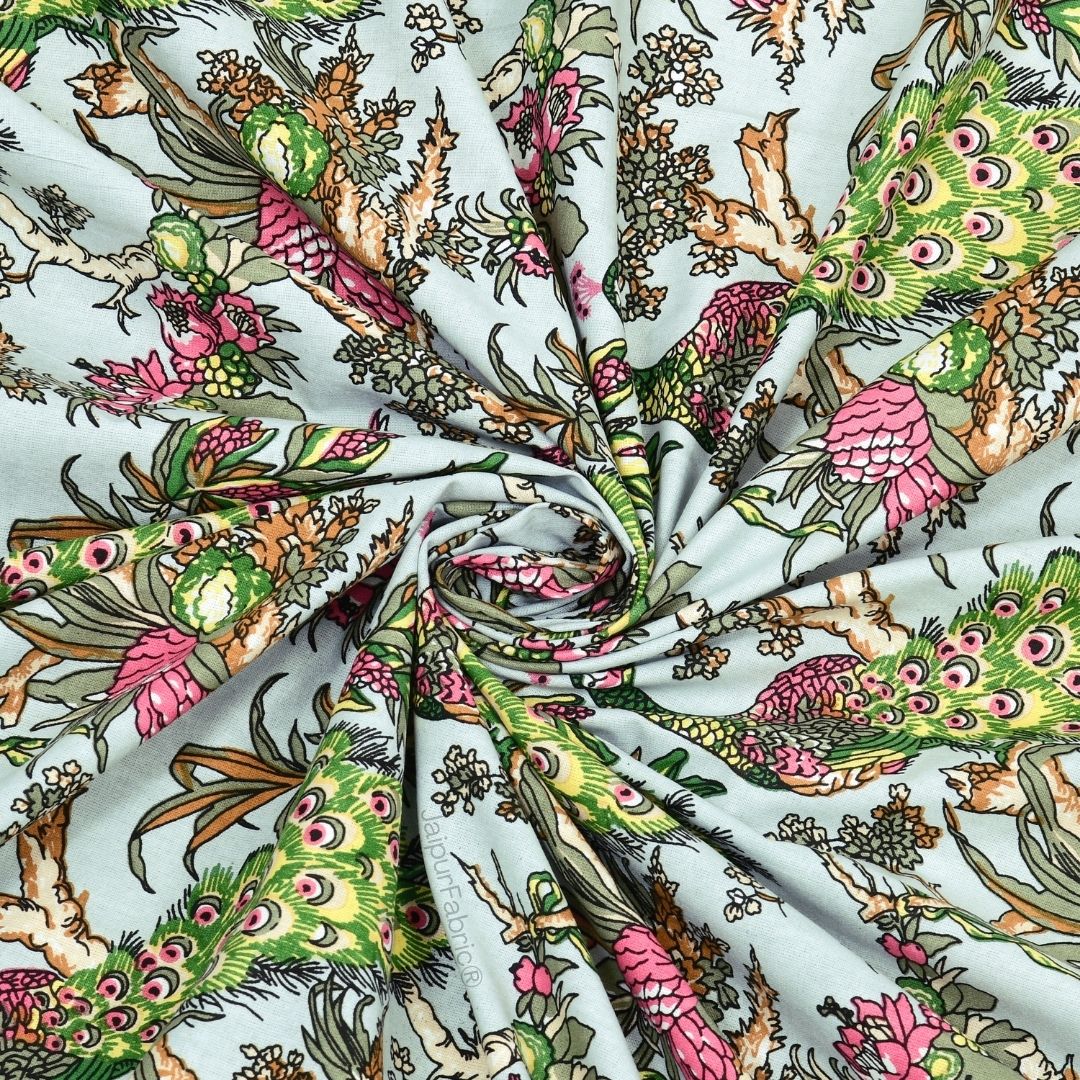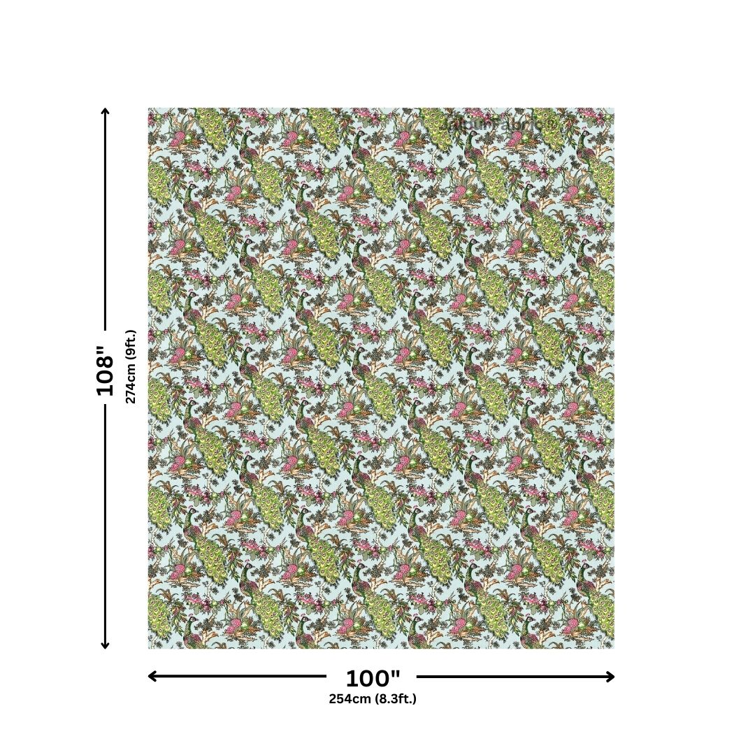 Woven from 100% pure cotton, this king-size bedsheet is light, airy, and gentle on the skin. Spanning 100" x 108", it features hand-blocked peacock feathers and floral motifs, reminiscent of a garden by a calm river.
