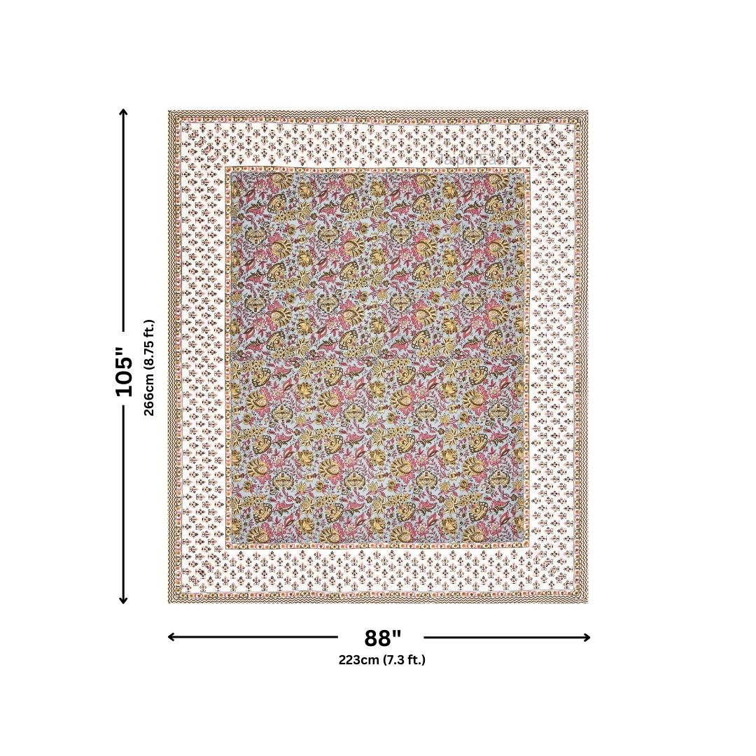 Mughal Garden Floral Cream Multi Double Bedsheet Pure Cotton