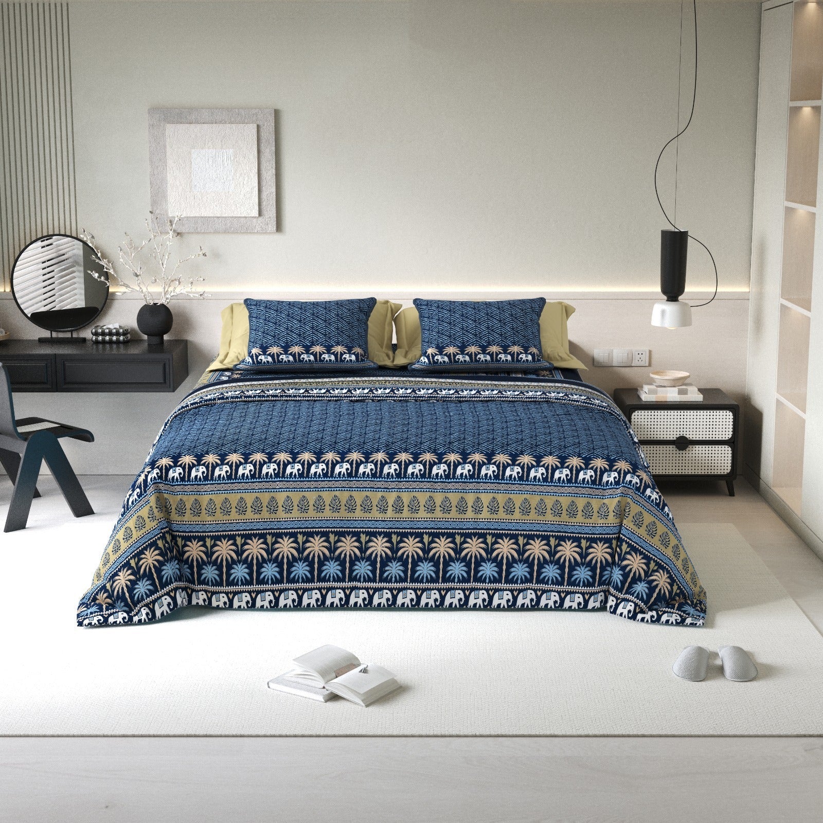 Navy Blue & Gold Elephant March King Size Bedsheet