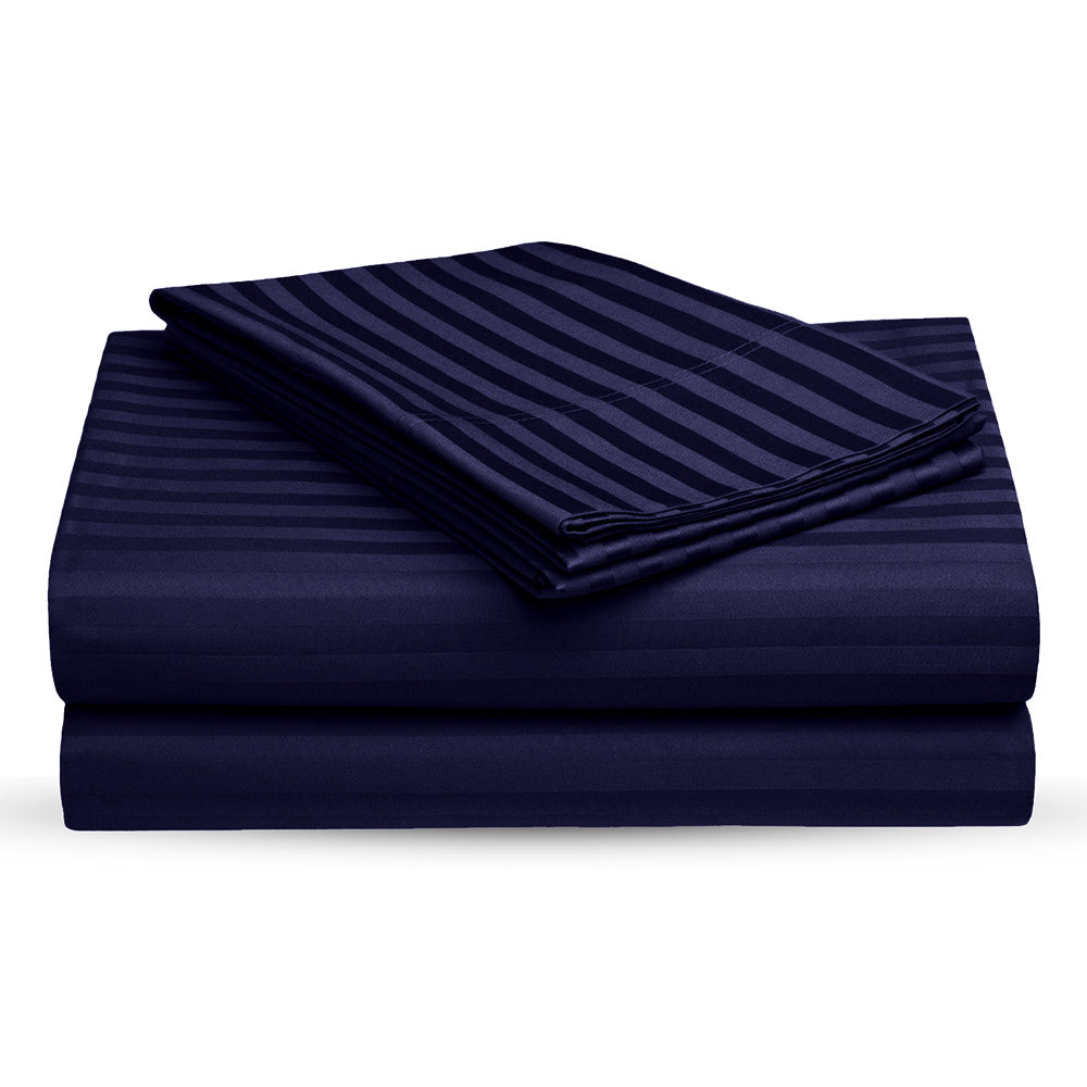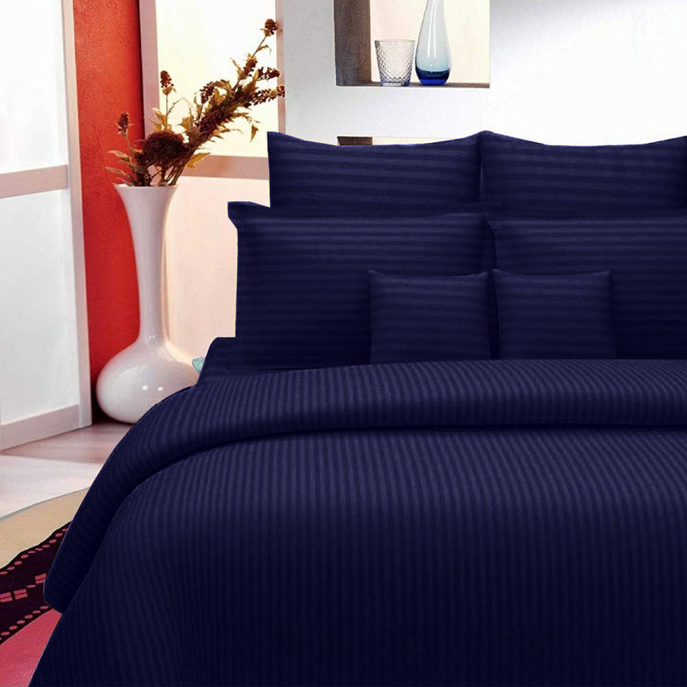 Navy Blue Self Design 300 TC King Size Pure Cotton Satin Slumber Sheet for Double Bed with 2 pillow covers