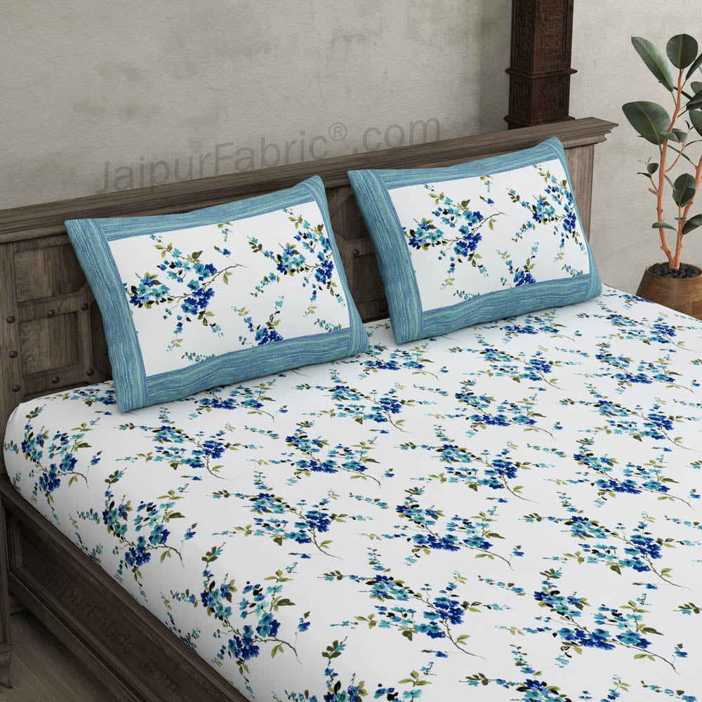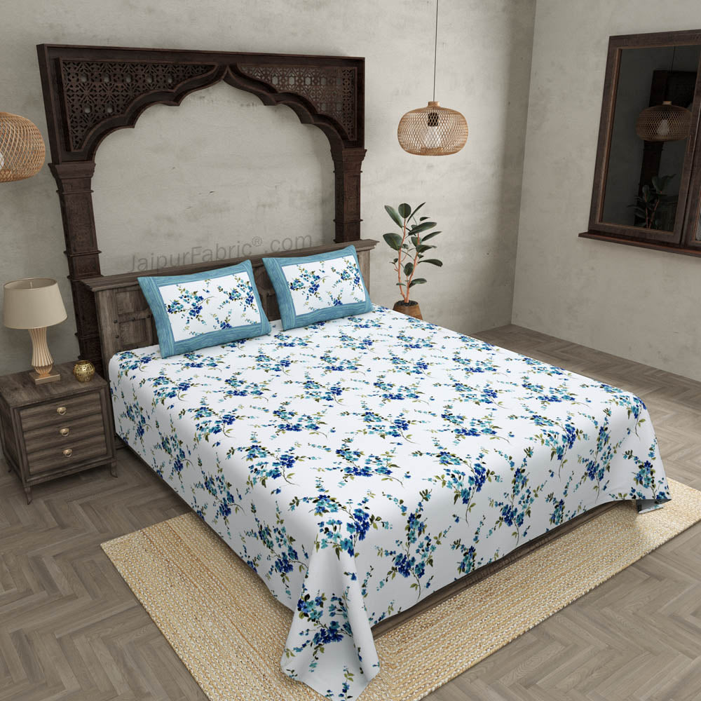 Pure Cotton 240 TC Double Bedsheet in Blue Motif Floral Print 🌸💙