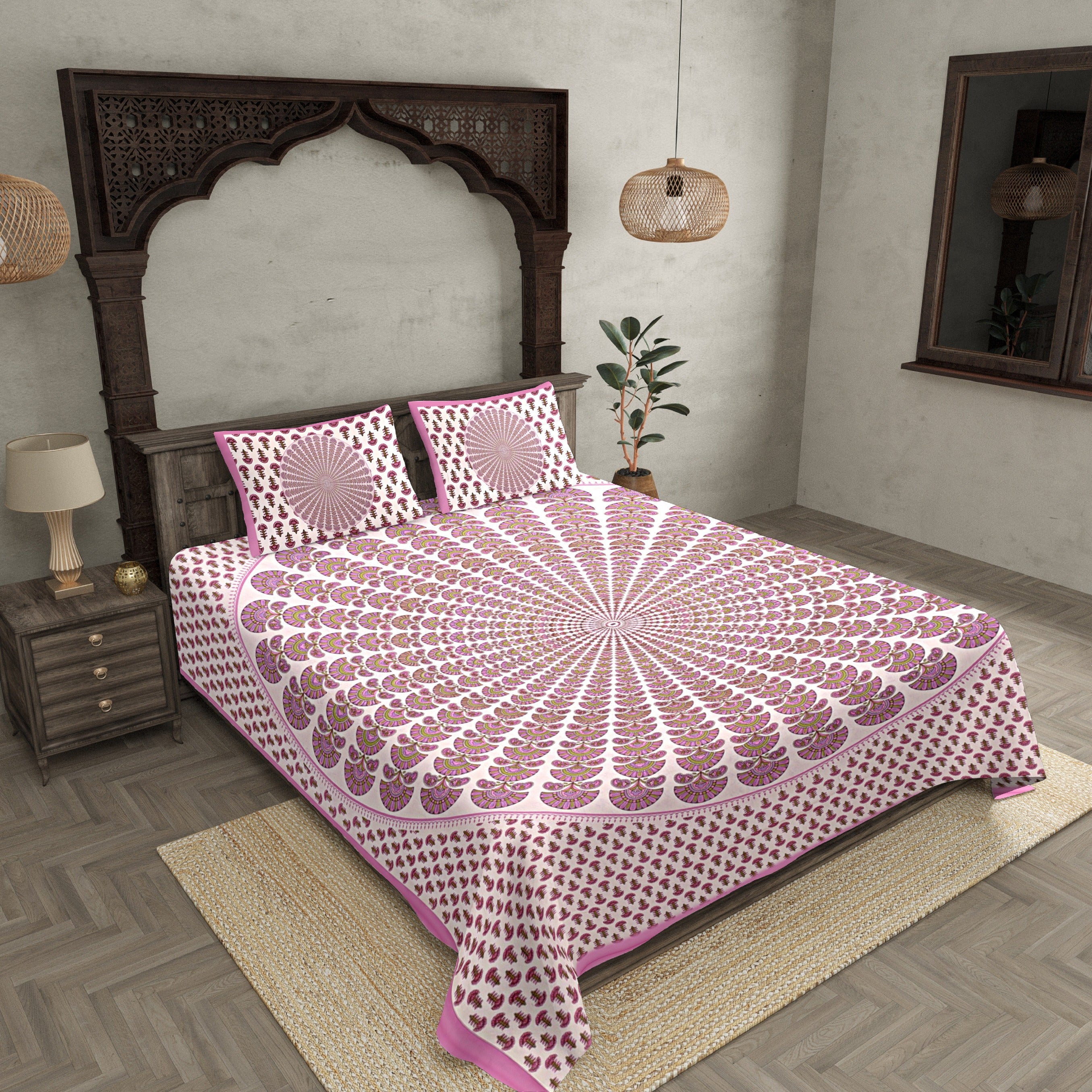 Add a touch of royal elegance to your bedroom with the Purple Kalangi Printed Cotton Double Bed Sheet from Jaipur Fabric. Crafted with care, this vibrant, classic design is inspired by traditional Rajasthani artistry, offering an exquisite blend of culture and comfort.