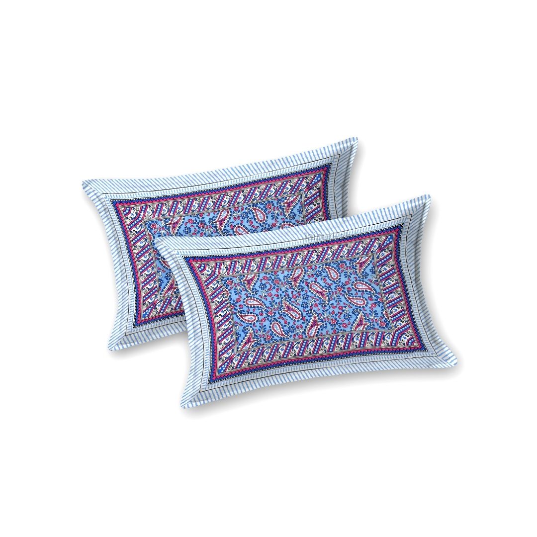 Royal Sanganeri Paisley Blue Double Bedsheet Pure Cotton