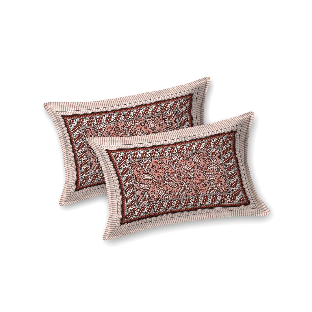 Royal Sanganeri Paisley Rust Red Double Bedsheet Pure Cotton