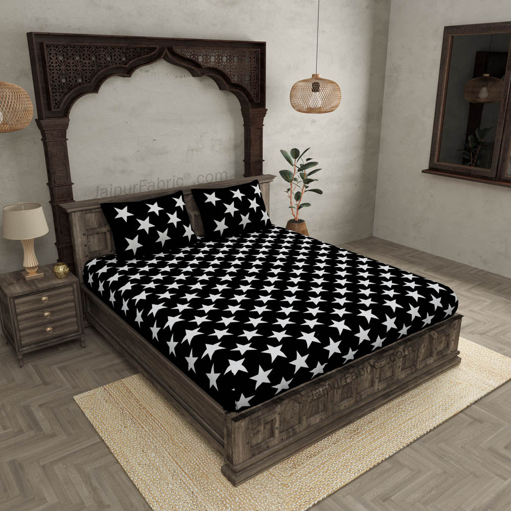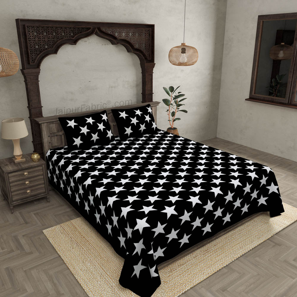 The black and white star pattern of this double size bedsheet will surely leave a good impression on you. The chic and elegant design of the bedsheet is perfect for the master bedroom or the kid’s room. Choose this bedsheet to quickly refresh or change the appearance of your bedroom without the considerable expense of a complete makeover. Make your bedroom a haven for a peaceful sleep with this crisp and punchy designed bedsheet.The size of the bedsheet is generous enough, and you will not have to worry about it pulling away when you are sleeping or when your kids are jumping on the mattress. The beautiful printed design and the smoothness of the bedsheet will make you want to spend more time on your bed rather than doing anything else. The black and white pattern of the bedsheet will go perfectly with any type of decor.The cotton bedsheet is highly durable that allows it to maintain its softness across multiple washes. You will notice that the color does not fade away with washes and they look as good as new, even after numerous uses. Invest in our shining star night bedsheet and be ready to receive compliments from people!