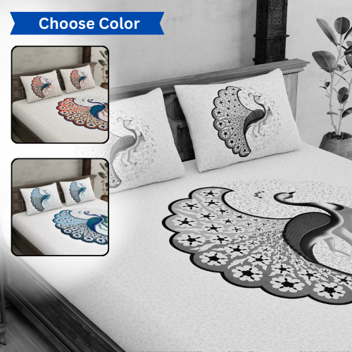 Pick the perfect shade for your bedroom and bring home a blend of luxury, comfort, and tradition with our Dancing Peacock Twill Cotton Double Bedsheet! 🦚✨