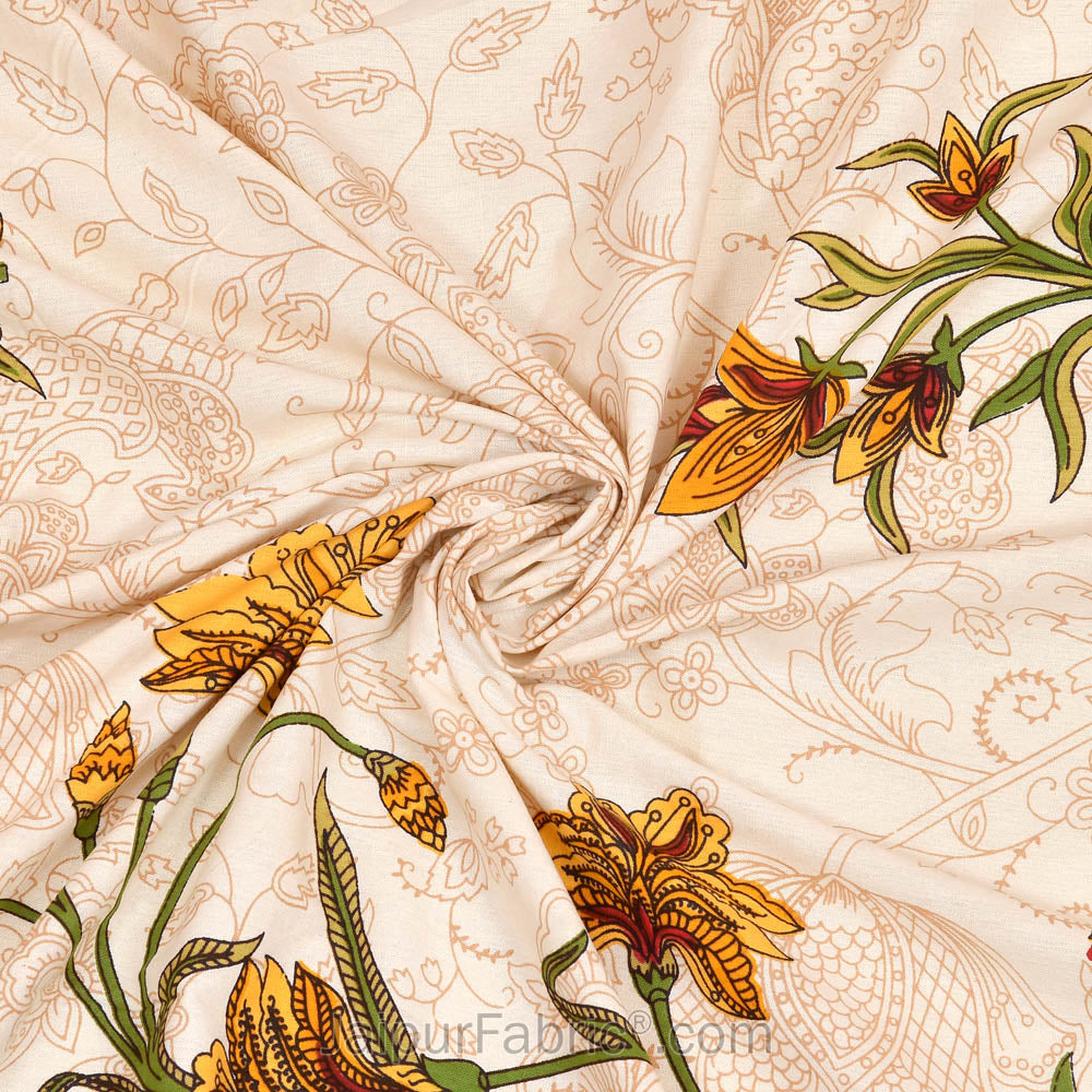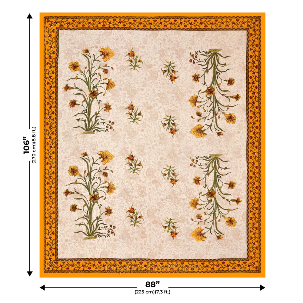 Yellow Border Tropical keri Design Cotton Double Bed Sheet